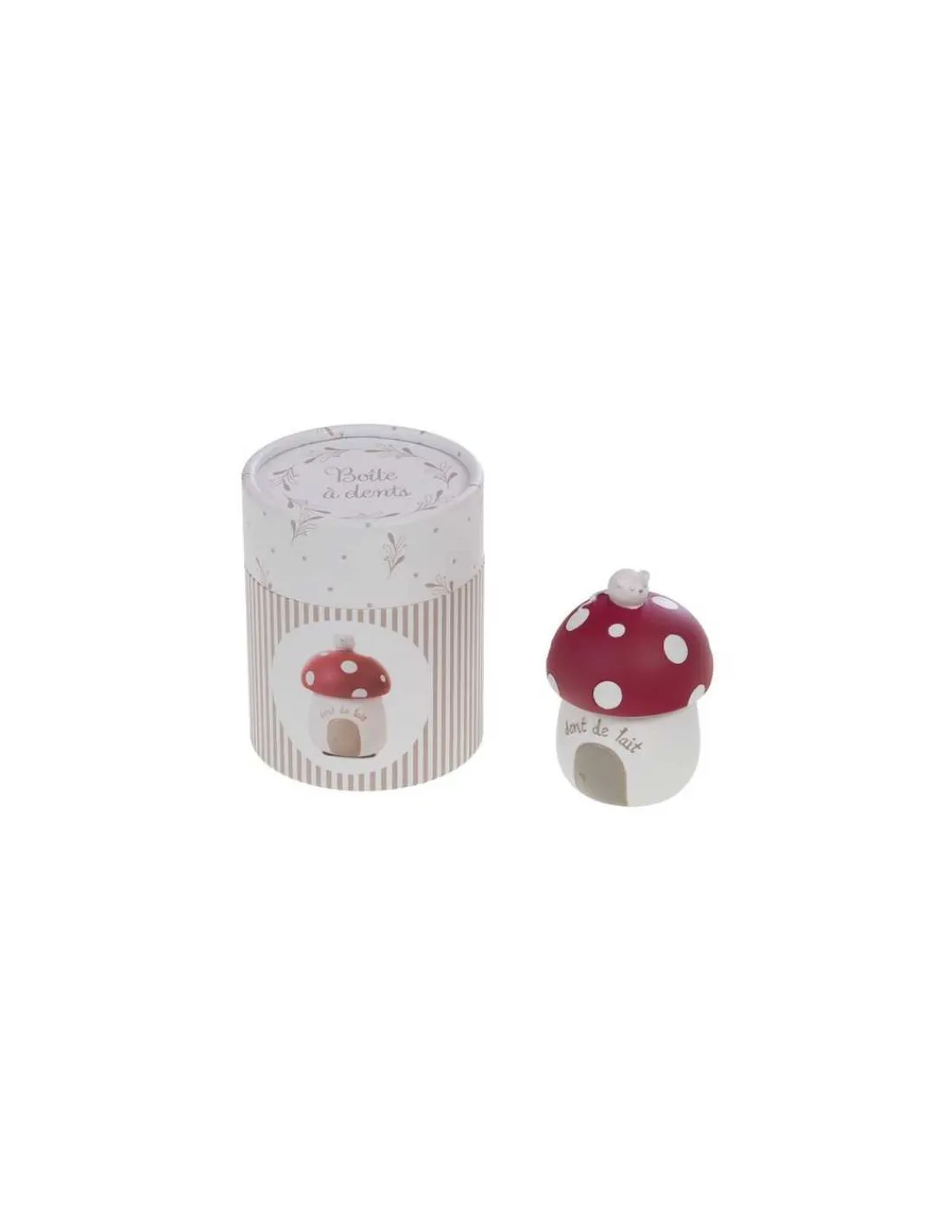 Une jolie boite en forme de champignon qui s’ouvre et dans laquelle vous pourrez placer les dents de lait de votre enfant.