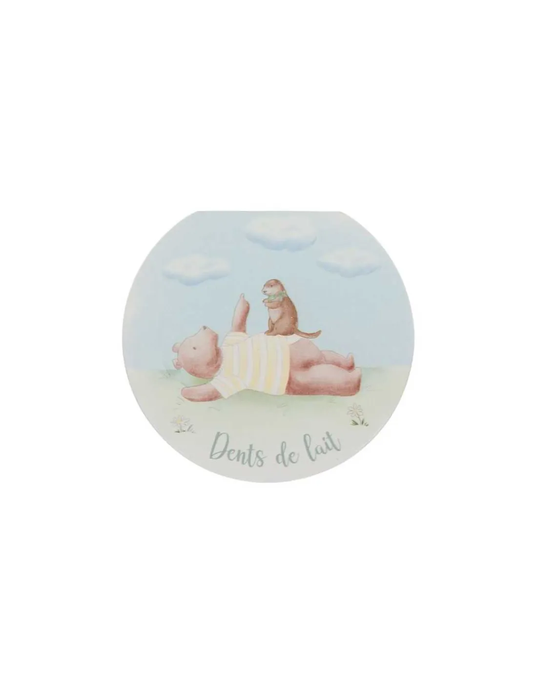 Une jolie boite qui s’ouvre, dans laquelle vous pourrez placer les 20 dents de lait de votre enfant et y glisser une pièce à l’intérieur lorsque la souris sera passée.