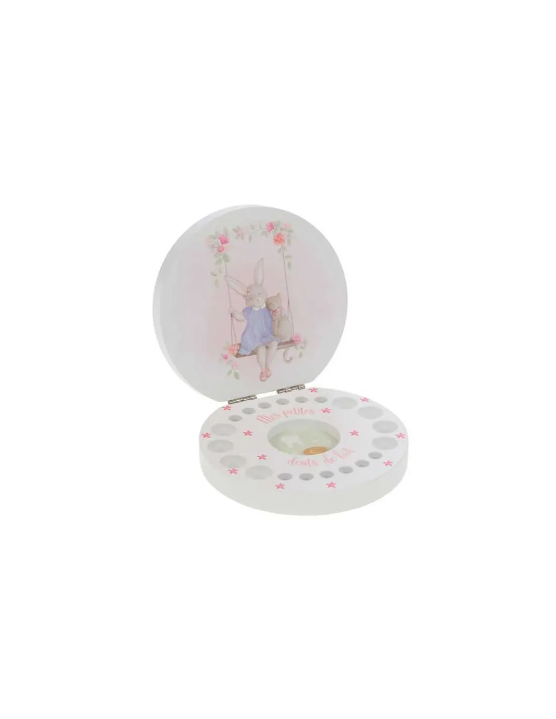 Une jolie boite qui s’ouvre, dans laquelle vous pourrez placer les 20 dents de lait de votre enfant et y glisser une pièce à l’intérieur lorsque la souris sera passée.