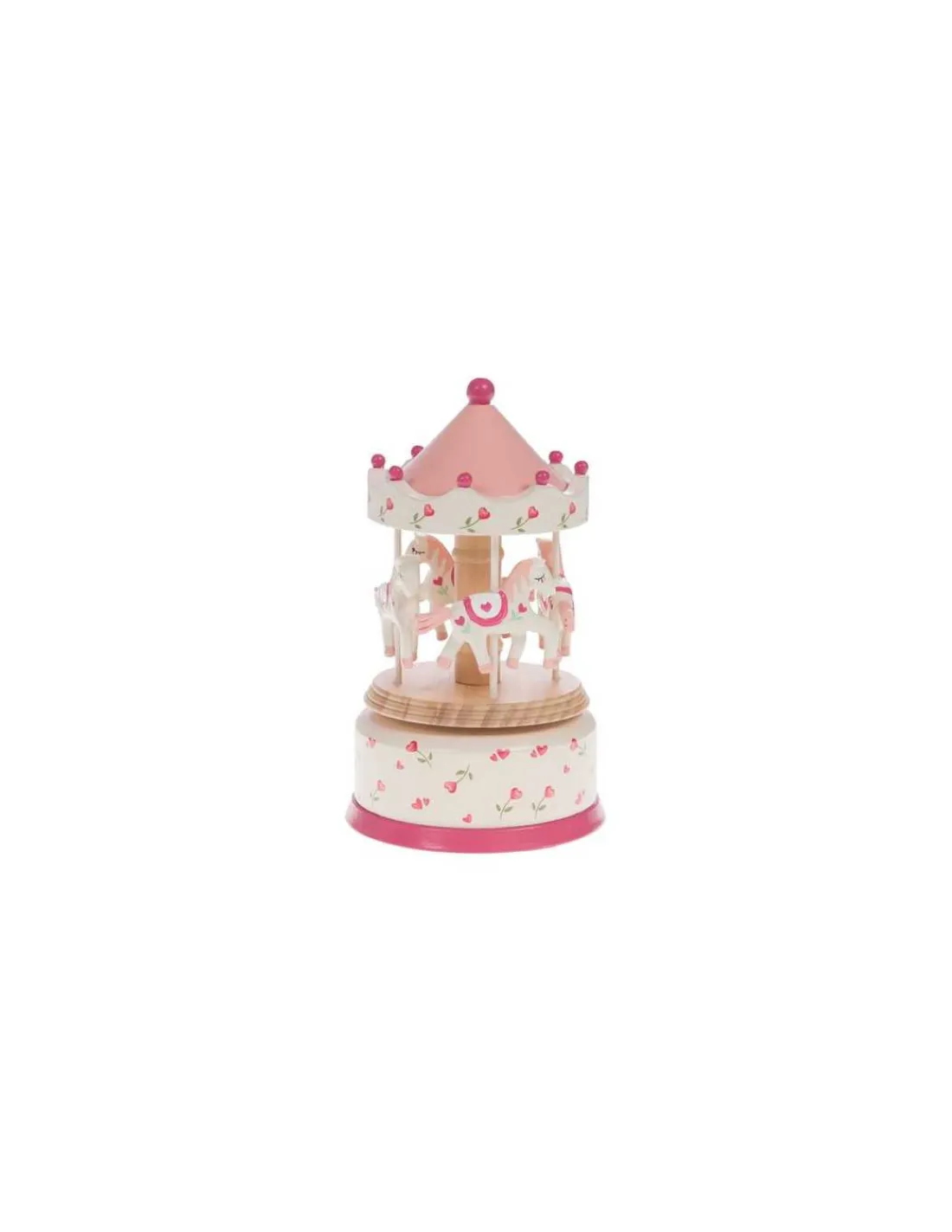 Ce cadeau trouvera sa place dans toutes les chambres d’enfants. Un manège musical où le mécanisme de la boite à musique se remonte en maintenant la partie inférieure du carrousel tout en tournant le chapiteau dans le sens des aiguilles d’une montre.