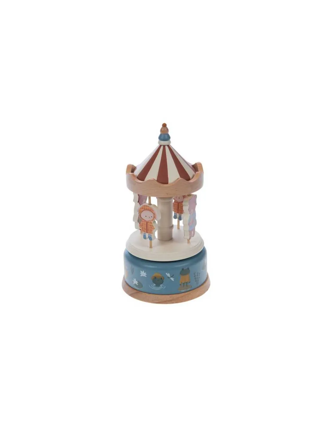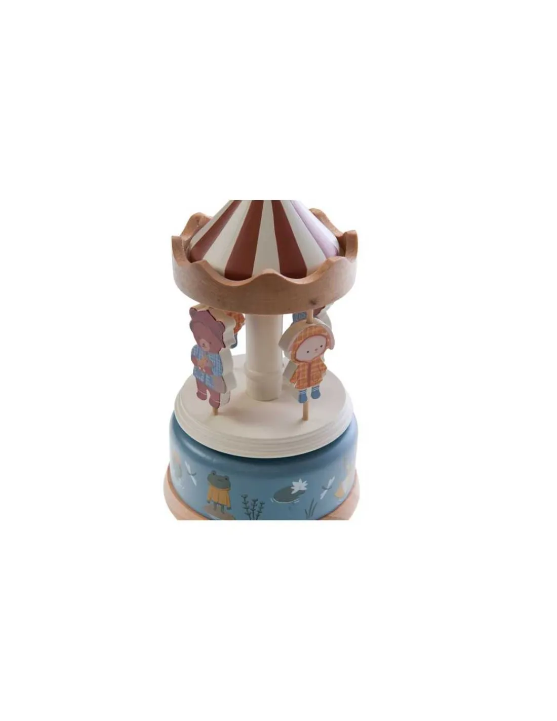 Ce cadeau trouvera sa place dans toutes les chambres d’enfants. Un manège musical où le mécanisme de la boite à musique se remonte en maintenant la partie inférieure du carrousel tout en tournant le chapiteau dans le sens des aiguilles d’une montre. Votre enfant va adorer regarder tourner sa boite à musique au son de la douce mélodie avec d’adorables oursons.