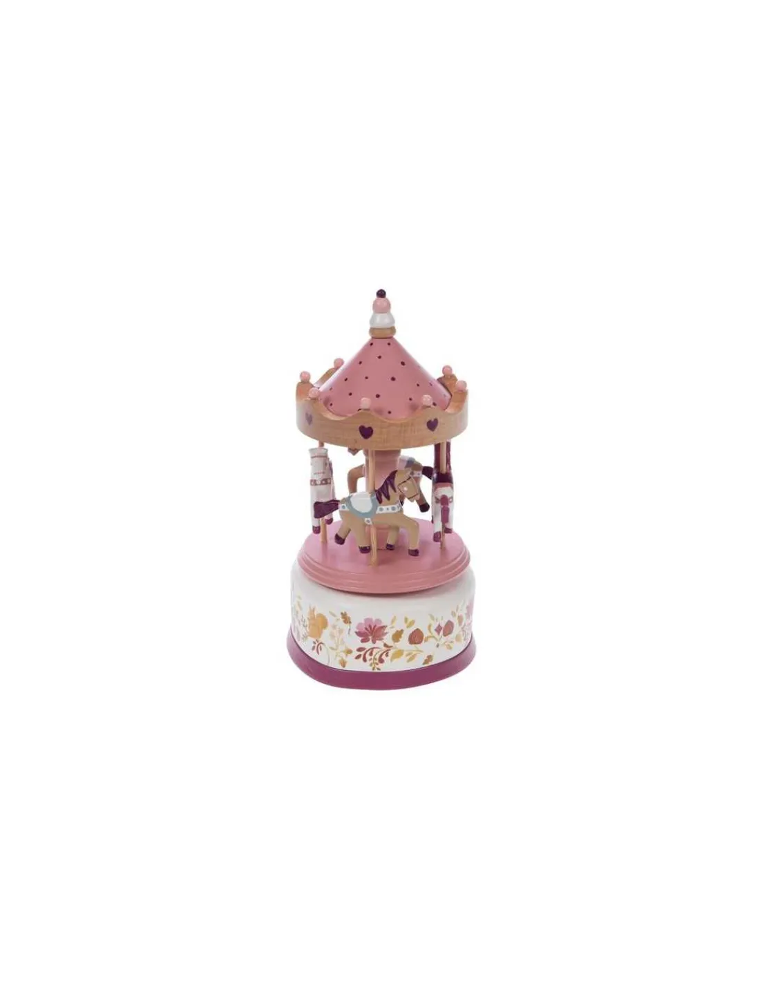 Votre enfant va adorer regarder tourner sa boite à musique au son de la douce mélodie « A la violette » avec d’adorables chevaux.