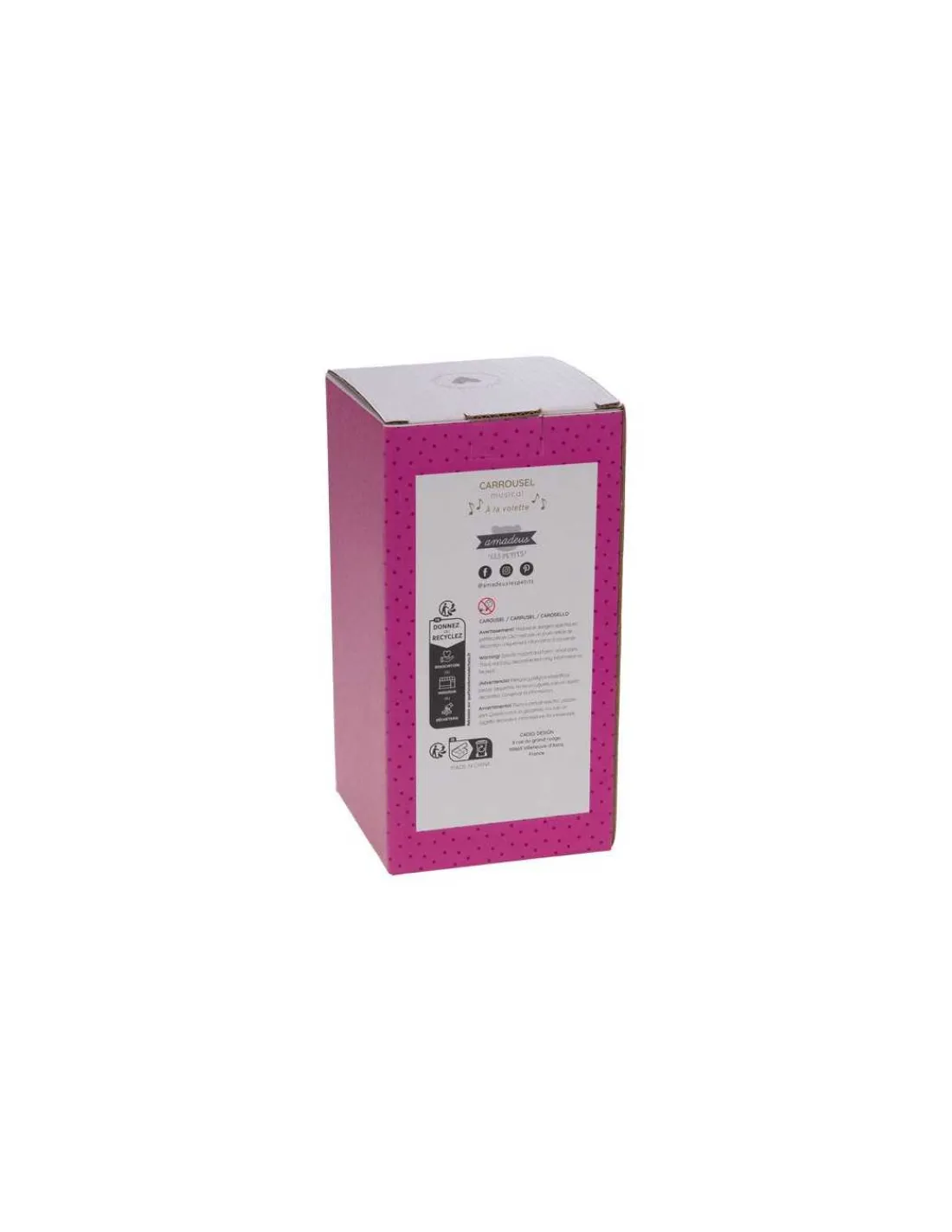 Découvrez la boite à musique carrousel Zoé de Amadeus Les Petits, un cadeau de naissance décoratif avec une douce mélodie. Un manège musical au design rétro d’antan.