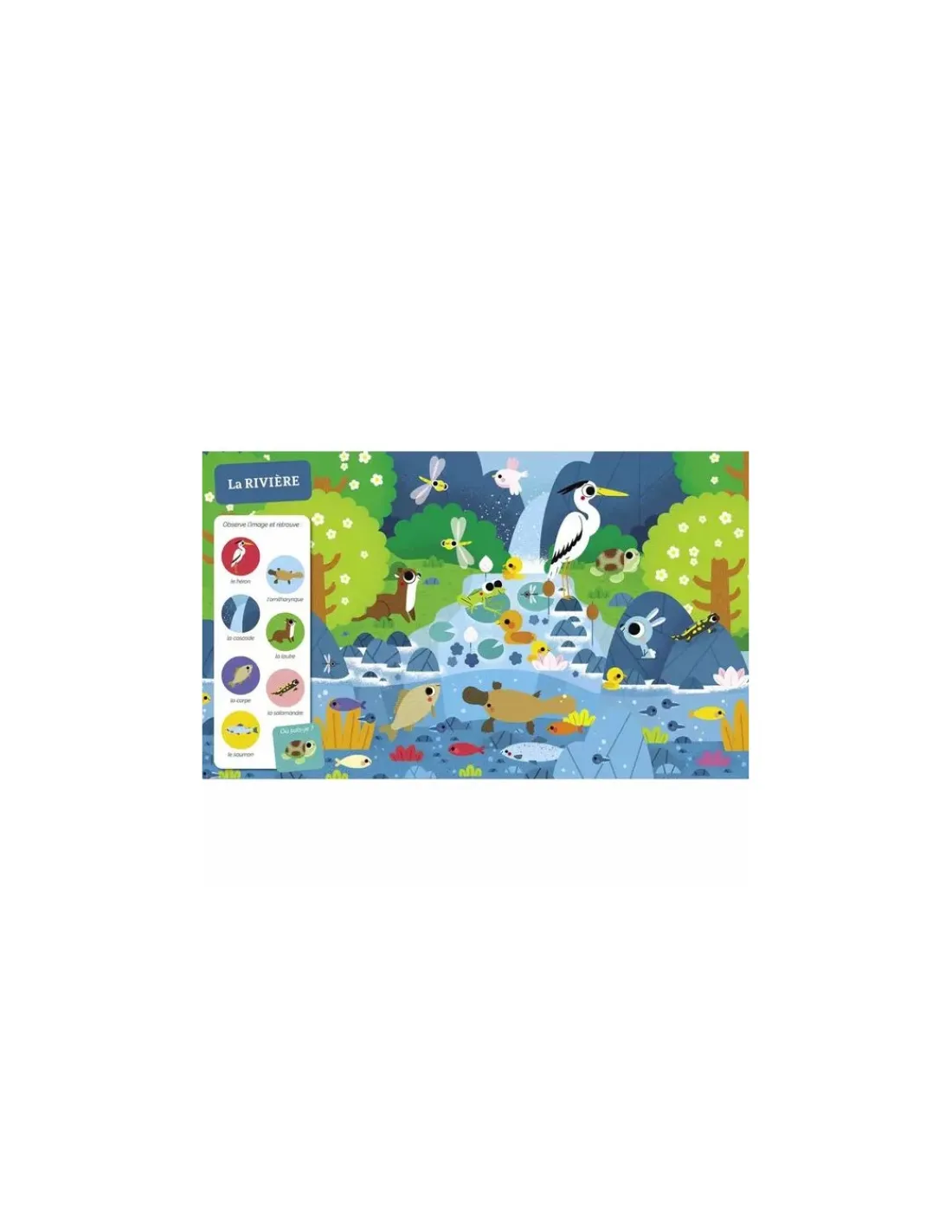 Un livre cherche et trouve à emporter partout pour jouer seul ou à plusieurs! 9 illustrations aux couleurs vives représentant des animaux et des objets sur le thème de l’eau, que votre enfant devra retrouver. Un livre éducatif qui permet aux enfants de développer leur sens de l’observation et leur vocabulaire dès le plus jeune âge.