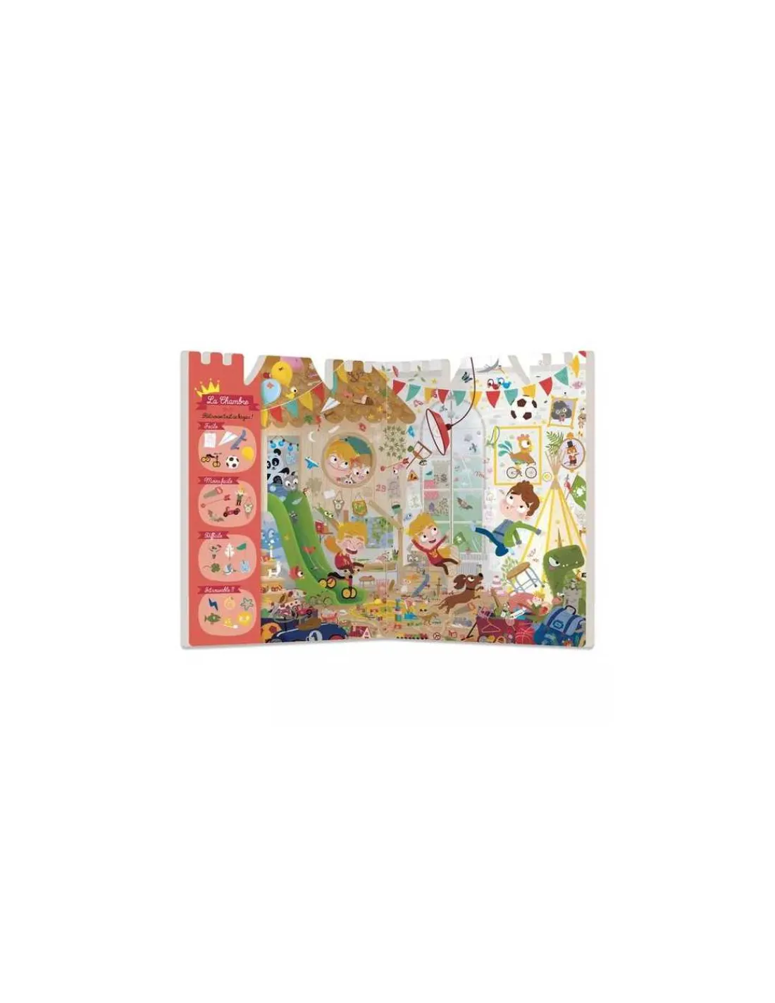 Un cherche et trouve avec 26 éléments à retrouver dans chaque pièce du château, classés par ordre de difficulté + les solutions à la fin et d’autres personnages à retrouver sur toutes les planches pour jouer seul ou à plusieurs.