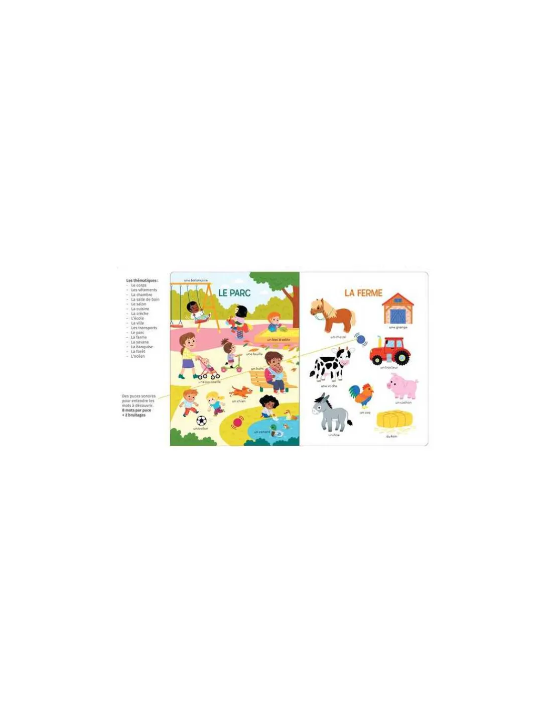 Pointer, nommer, enrichir son vocabulaire et développer son ouïe dès le plus jeune âge! Un livre éducatif qui permet aux filles et aux garçons de développer leur vocabulaire de façon ludique.