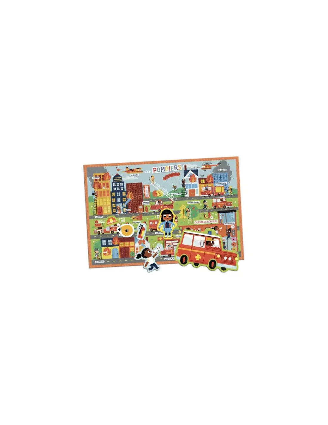 Une pochette de 30 aimants et un grand poster pour tout savoir sur les pompiers.