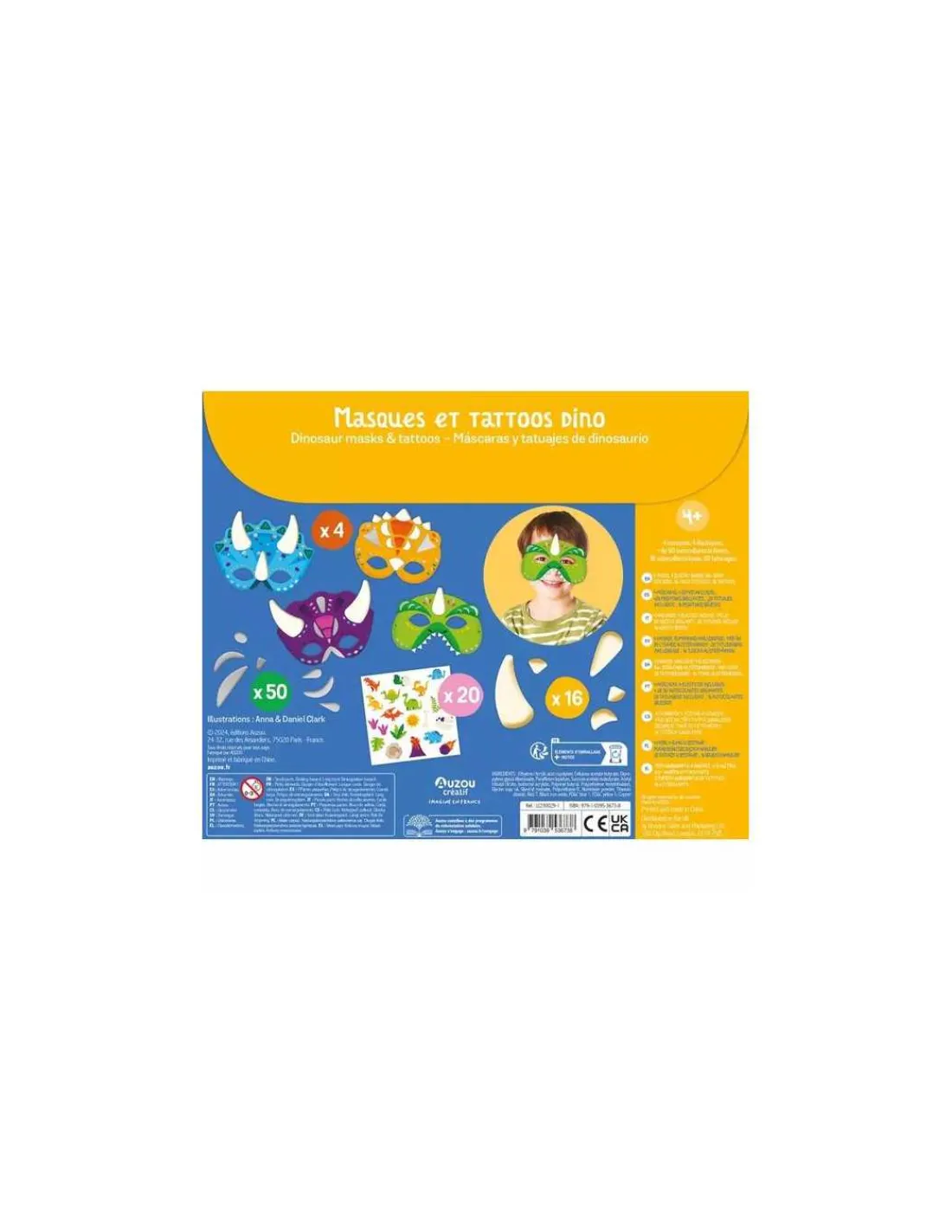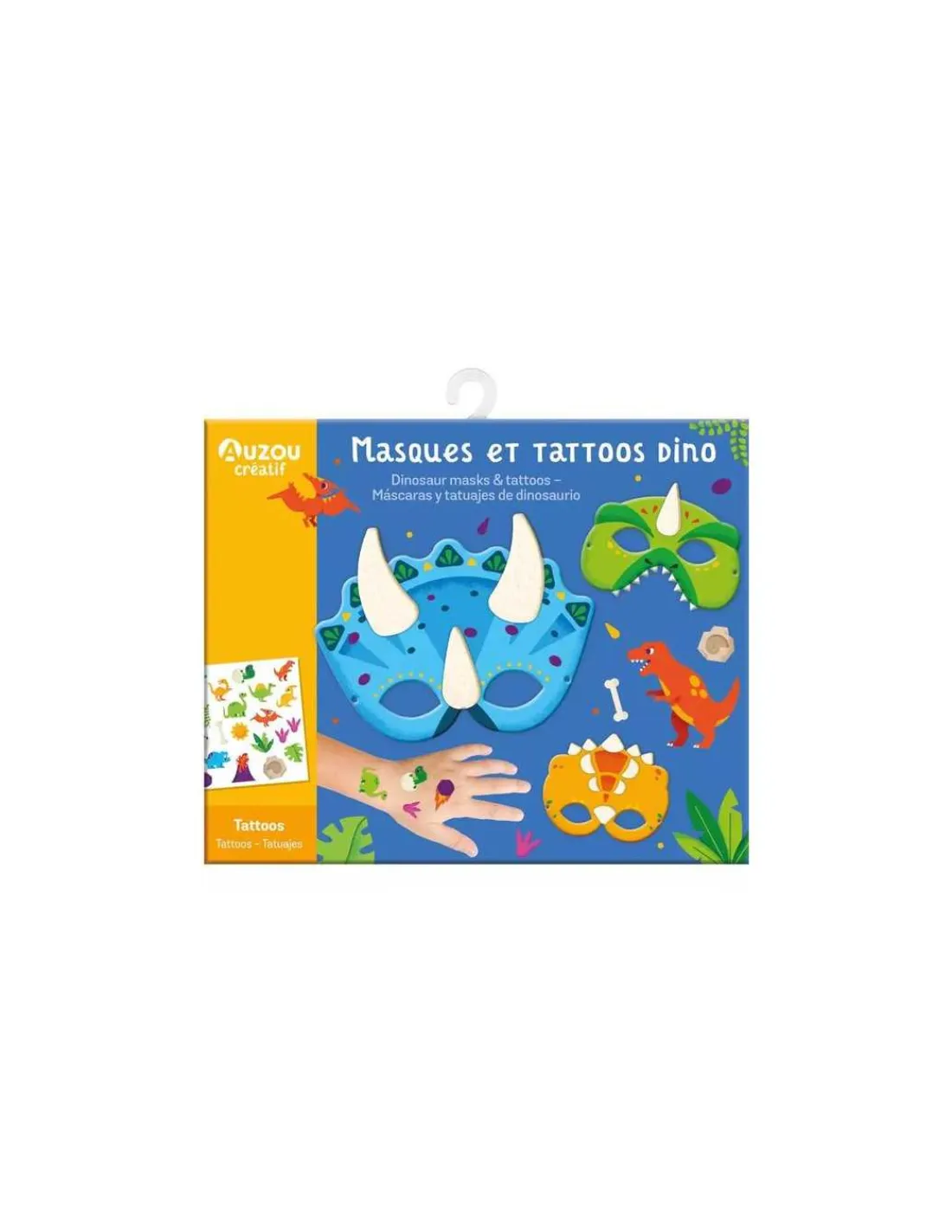 Découvrez la pochette créative Masques et tatoos dino de Auzou, une activité créative sur le thème des dinosaures, pour les enfants dès 4 ans. Une pochette pour fêter le carnaval, aux couleurs des dinosaures!