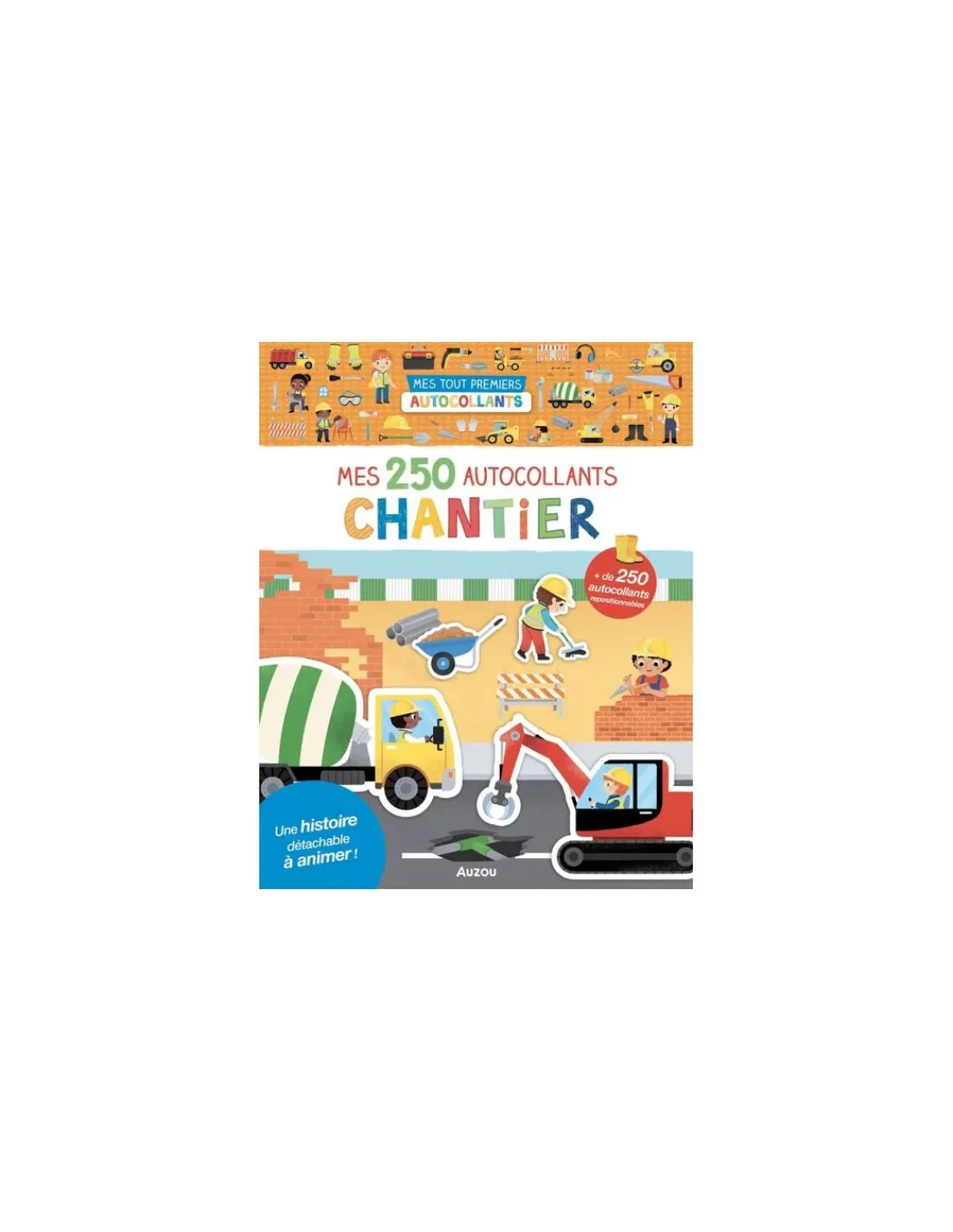 Découvrez le cahier Mes 250 Autocollants Chantier de Auzou, un cahier de 32 pages que les enfants dès 3 ans prendront plaisir à animer grâce aux autocollants repositionnables.
