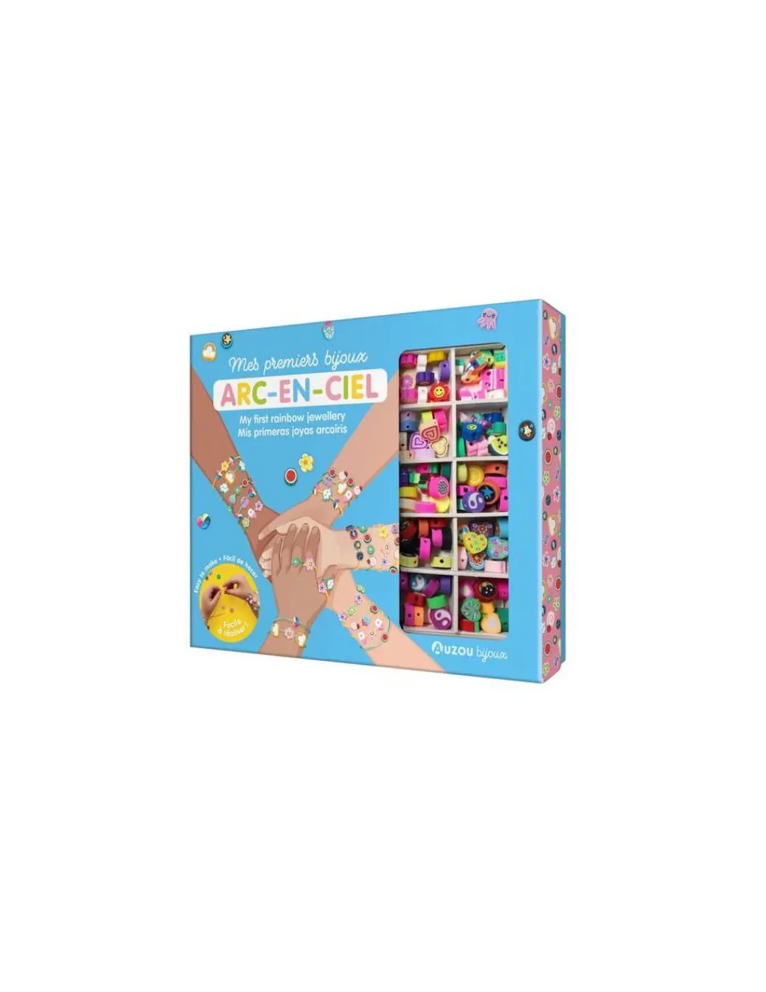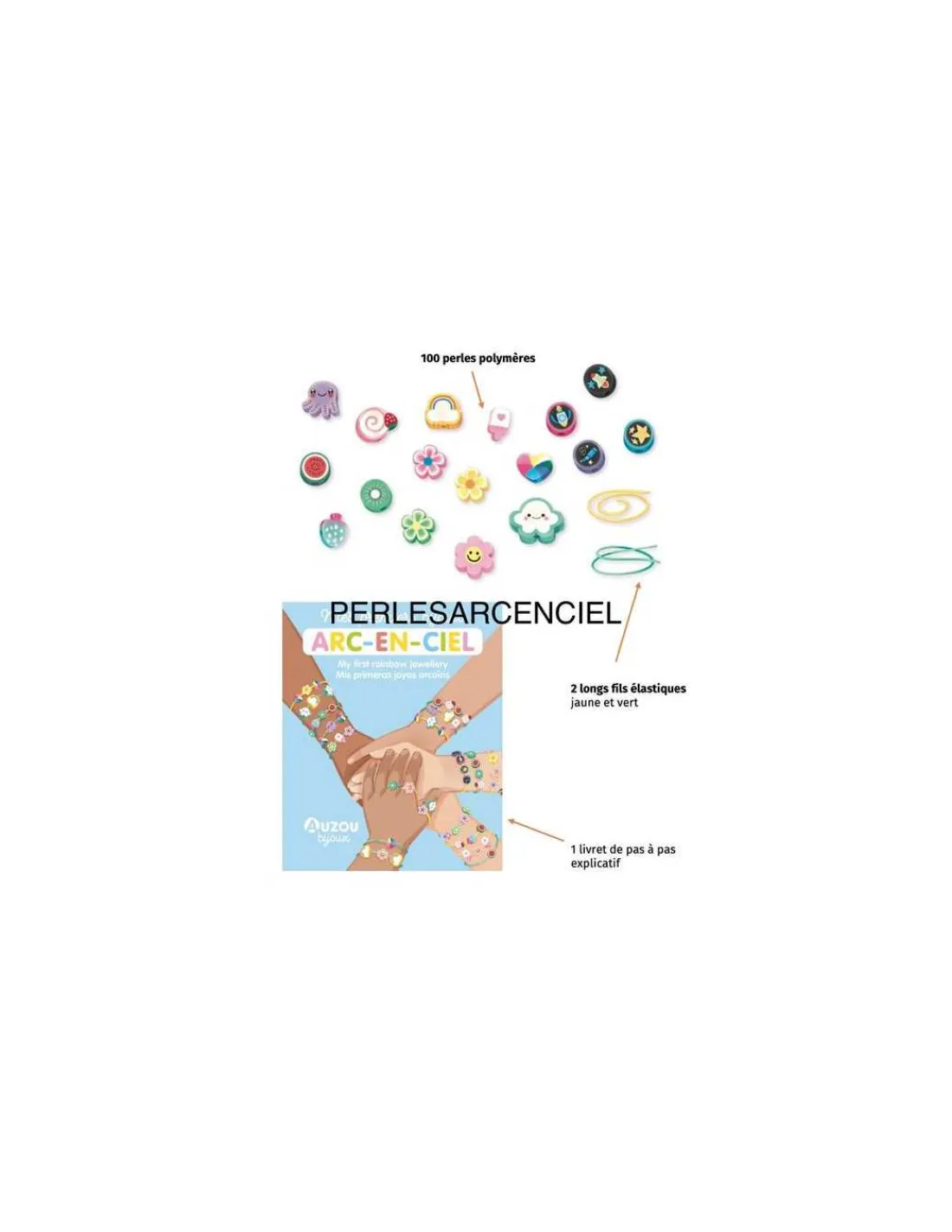Découvrez Mes bijoux Arc-en-ciel de la collection « Auzou Bijoux » de Auzou, un magnifique coffret comprenant 100 perles polymères faciles à enfiler permettant aux enfants, dès 4 ans, de confectionner leurs premiers bracelets.