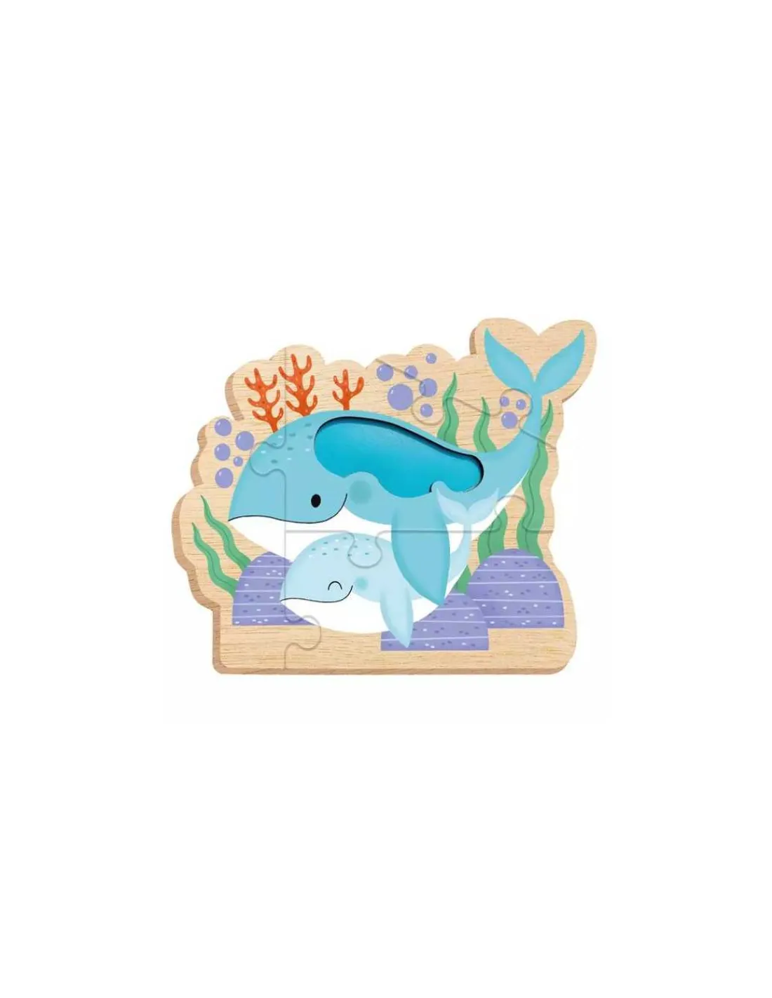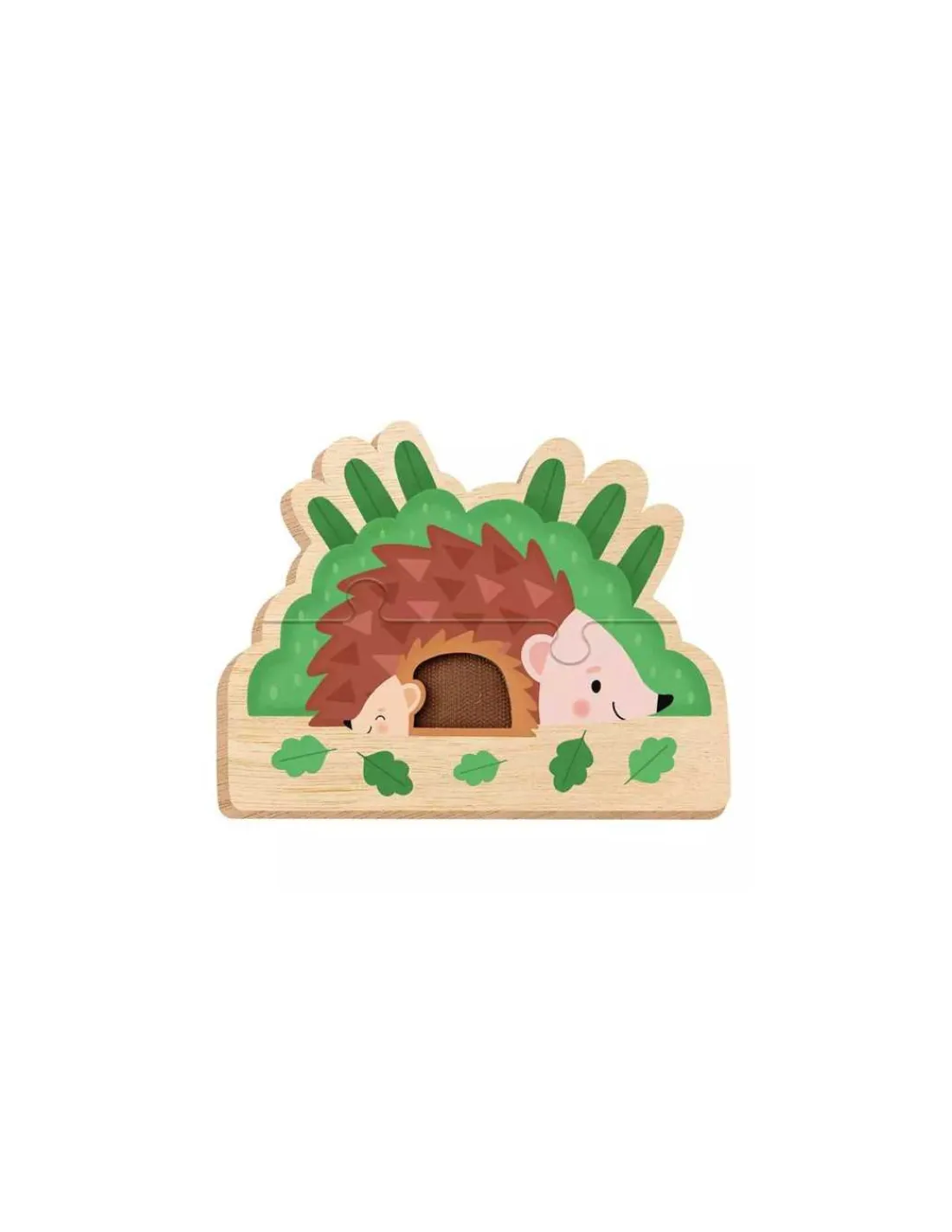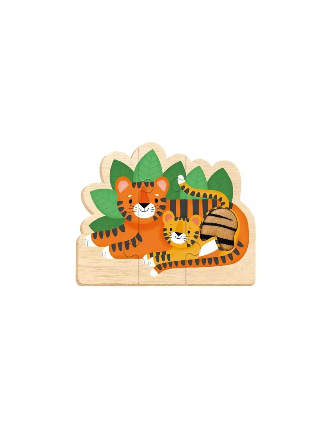 3 superbes puzzles évolutifs en bois et à toucher! Chaque puzzle est adapté à un niveau différent : un puzzle de 2 pièces, un puzzle de 3 pièces et un puzzle de 4 pièces. Une thématique maman et bébé avec le tigre, la baleine et le hérisson.