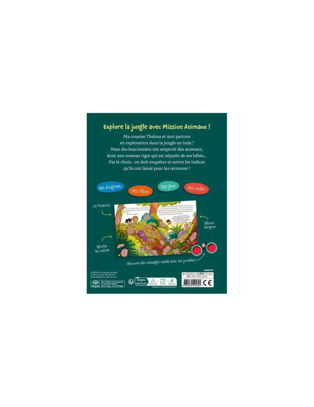 Découvrez le livre Mon roman énigme – mission animaux de Auzou, un livre escape game avec des jumelles d’aventurier à offrir aux enfants dès 6 ans. Explore la jungle avec missions animaux !