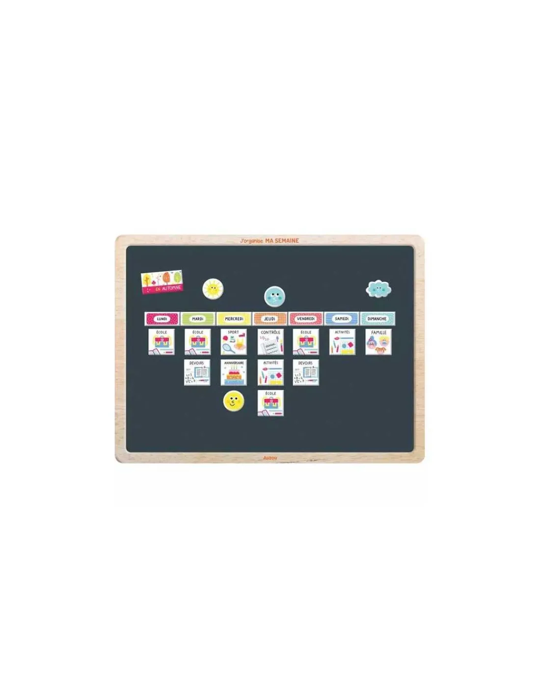 Découvrez Mon tableau J’organise ma semaine de Auzou, un tableau réversible avec plus de 50 magnets pour les enfants à partir de 3 ans.