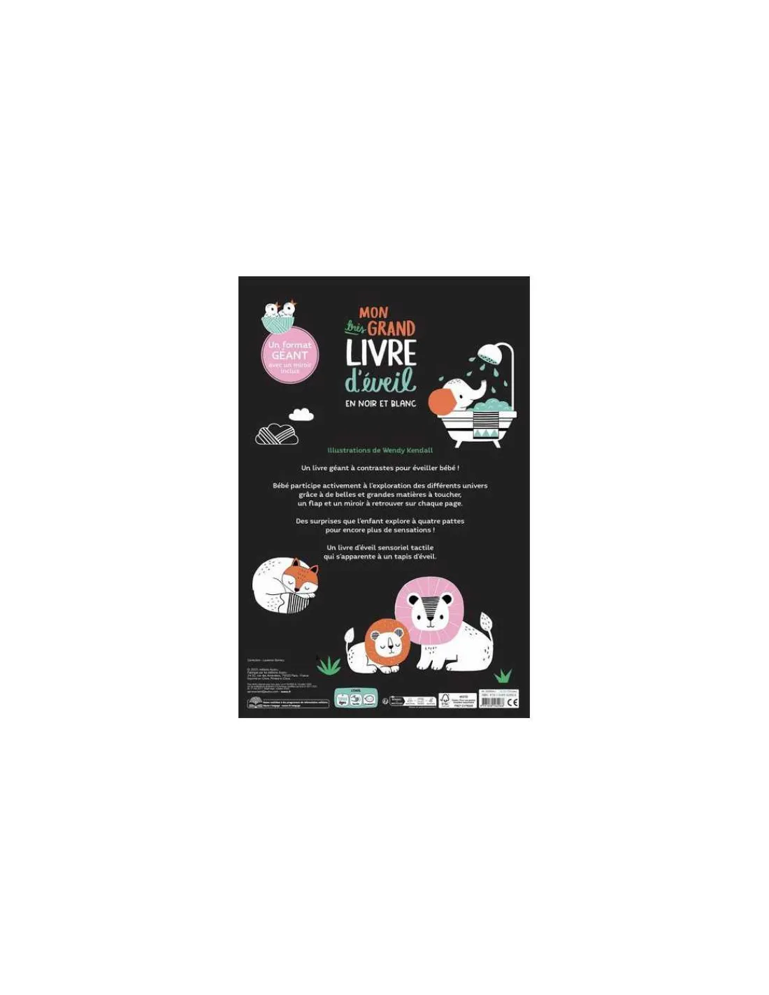 Découvrez Mon très grand livre d’éveil en noir et blanc de Auzou, un livre en carton géant de 8 pages pour les enfants dès le plus jeune âge. Un livre d’éveil géant à toucher et à contempler, illustré par Wendy Kendall.