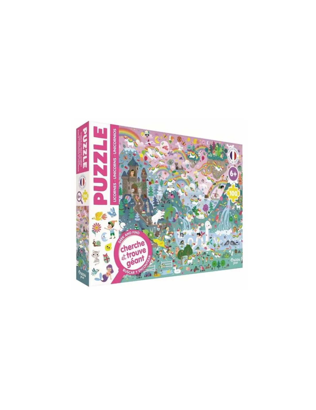 Découvrez le puzzle cherche et trouve géant Licornes de Auzou, un magnifique puzzle de 100 pièces en carton pour les enfants dès 6 ans. Un puzzle fabriqué en France sur le thème des licornes.