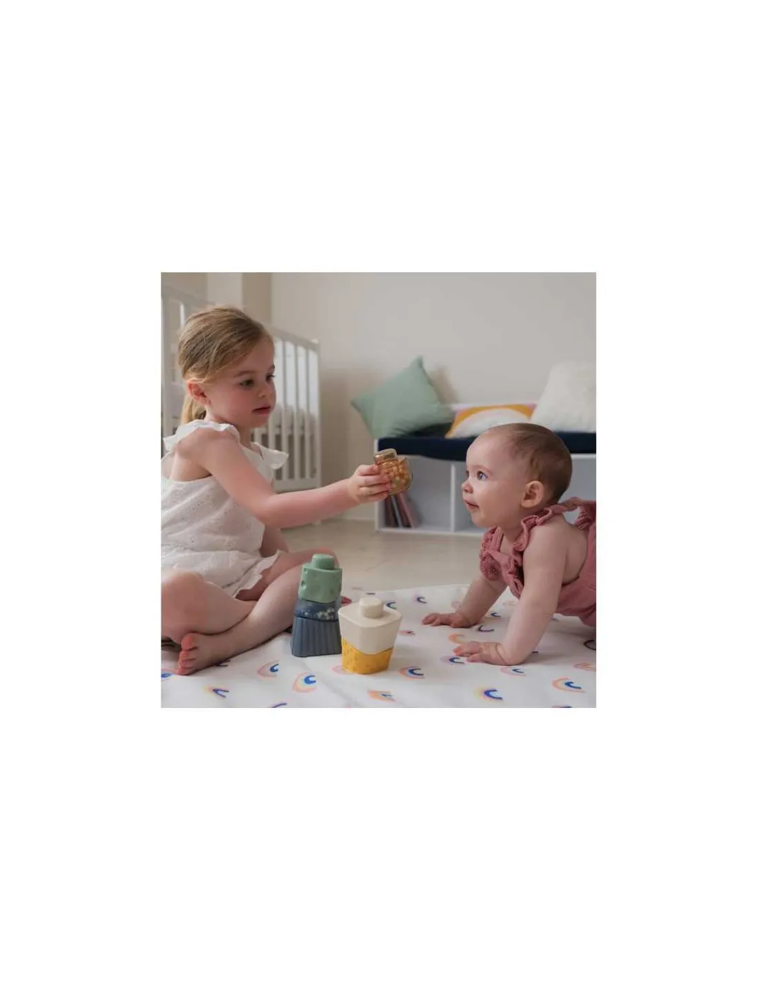Découvrez la tour sensorielle à empiler de BabyToLove, un jouet d’éveil spécialement conçu pour les bébés dès 6 mois. Ce jouet multisensoriel stimule les sens tout en développant la motricité fine.