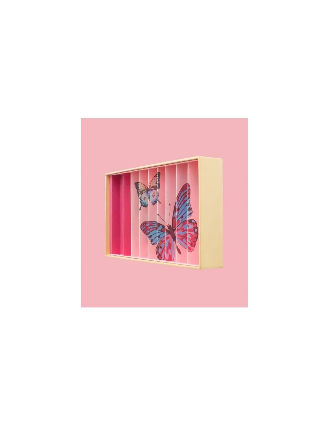 En ouvrant le coffret, vous pourrez vous-même faire apparaître une envolée de papillons. Avec son design anamorphique, ce ne sont pas seulement de superbes billes que vous y découvrirez… laissez-vous surprendre par tous les secrets cachés au fond du coffret!