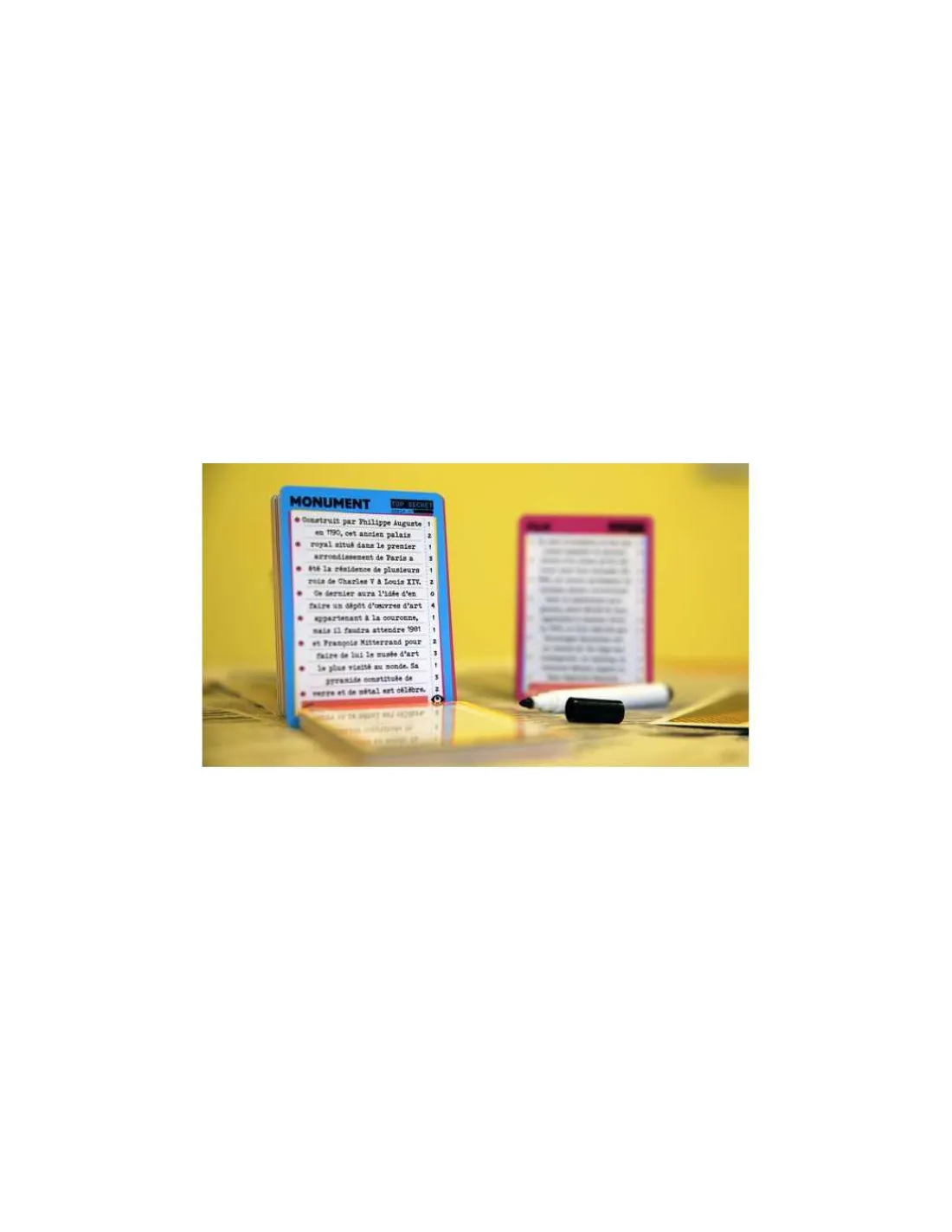 La boite de jeu contient 264 cartes, 8 feutres effaçables, 5 lavettes, 1 étui de transport et la règle du jeu.
