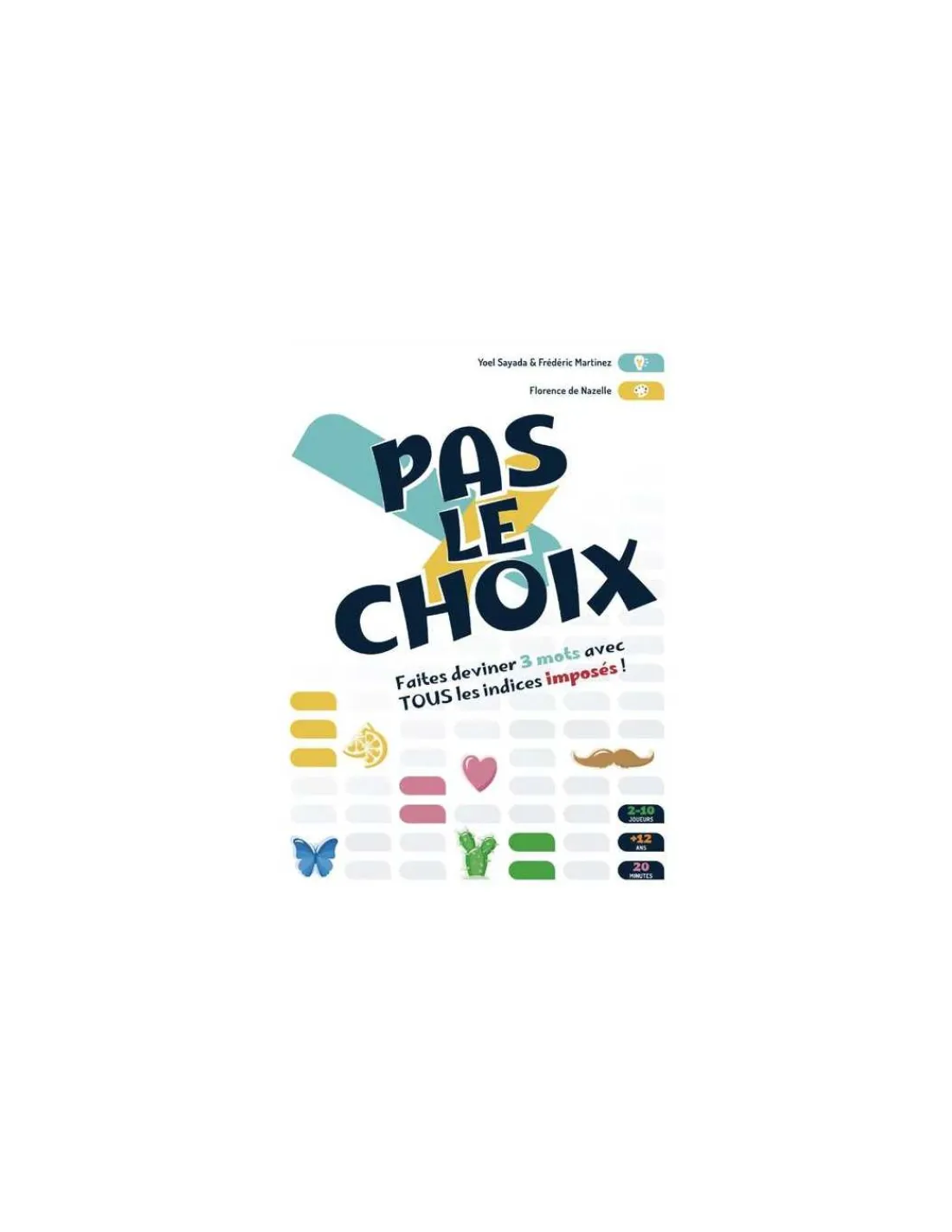 Découvrez le jeu Pas le choix de Hiboutatillus, un jeu de déduction et d’association pour 2 à 10 joueurs dès 12 ans où vous devrez faire deviner des mots avec des indices imposés.
