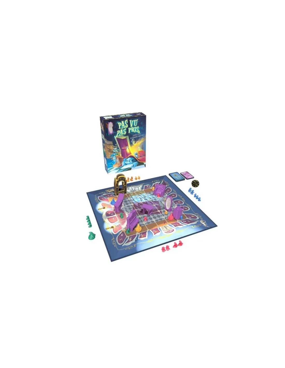 Découvrez le jeu Pas vu, pas pris! de Letheia, un jeu familial de déplacement, d’observation et de cache-cache pour jouer de 2 à 4 joueurs à partir de 8 ans où vous devrez faire traverser le hall d’hôtel au plus grand nombre possible de vos fantômes. Un jeu en 3 dimensions où les meubles se retrouvent dans tous les sens, pour optimiser les cachettes.