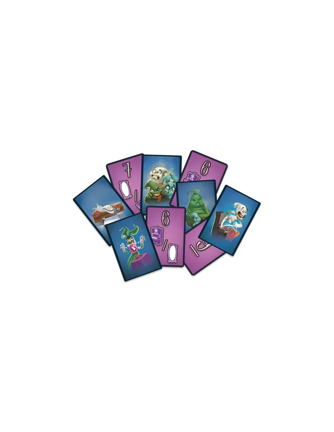 Le jeu contient 1 plateau de jeu, 28 fantômes, 1 dé, 6 meubles, 1 serrure, 32 cartes, 1 notice de montage et la règle du jeu.