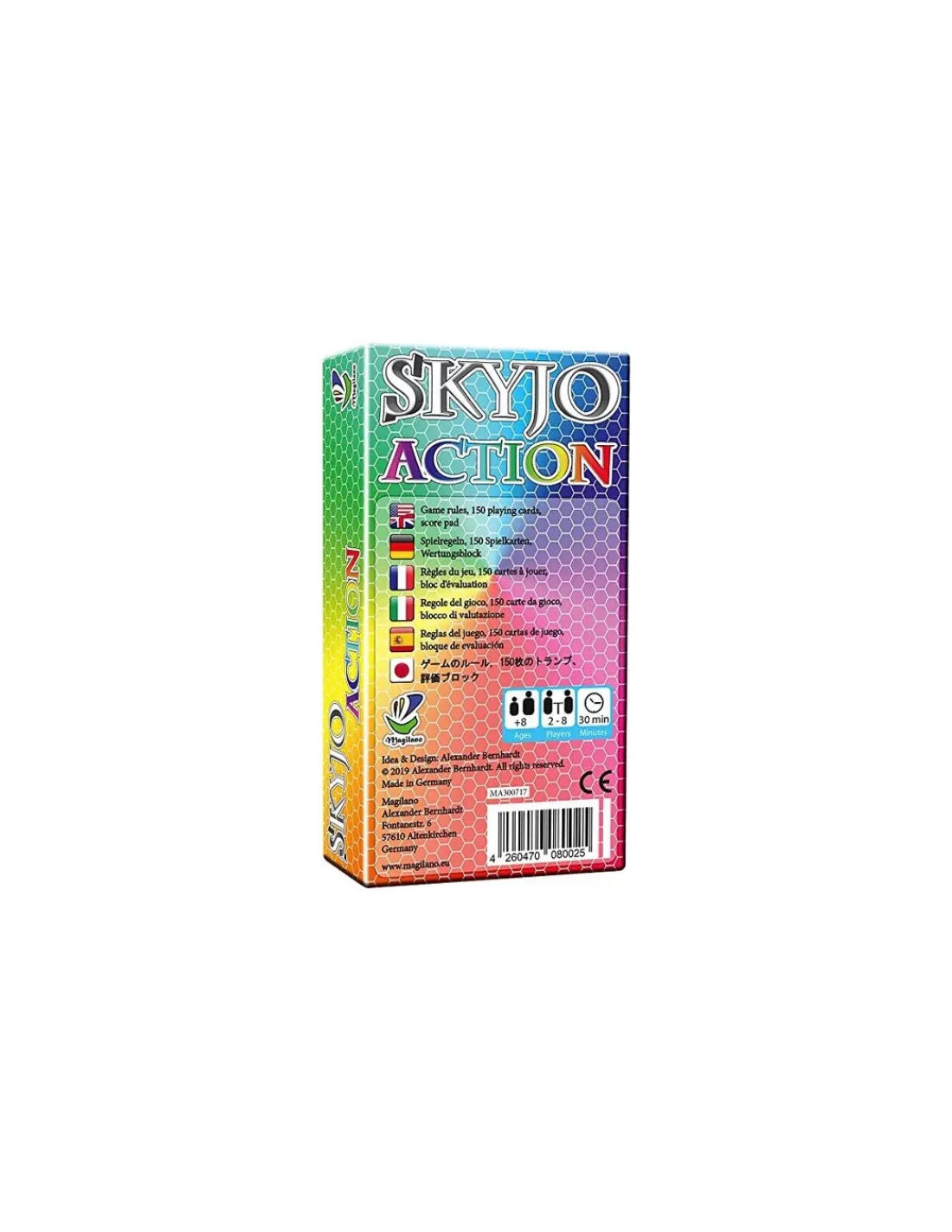 Découvrez le jeu Skyjo action, un jeu de cartes simple, subtil et terriblement addictif pour jouer de 2 à 8 joueurs à partir de 8 ans.