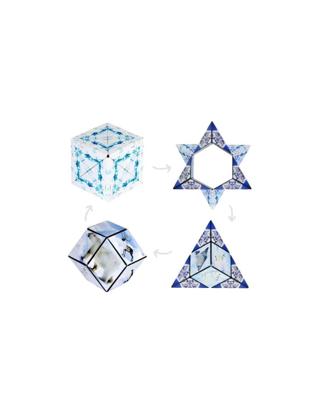 Ce mystérieux cube magnétique se transforme en plus de 70 formes kaléidoscopiques. Agitez, tordez, et laissez-vous guider par les 36 aimants. Avec ses 70 possibilités de formes, ce casse-tête en 3 dimensions propose une variété infinie de combinaisons à explorer. Des heures de divertissement stimulant l’esprit et les sens vous attendent!