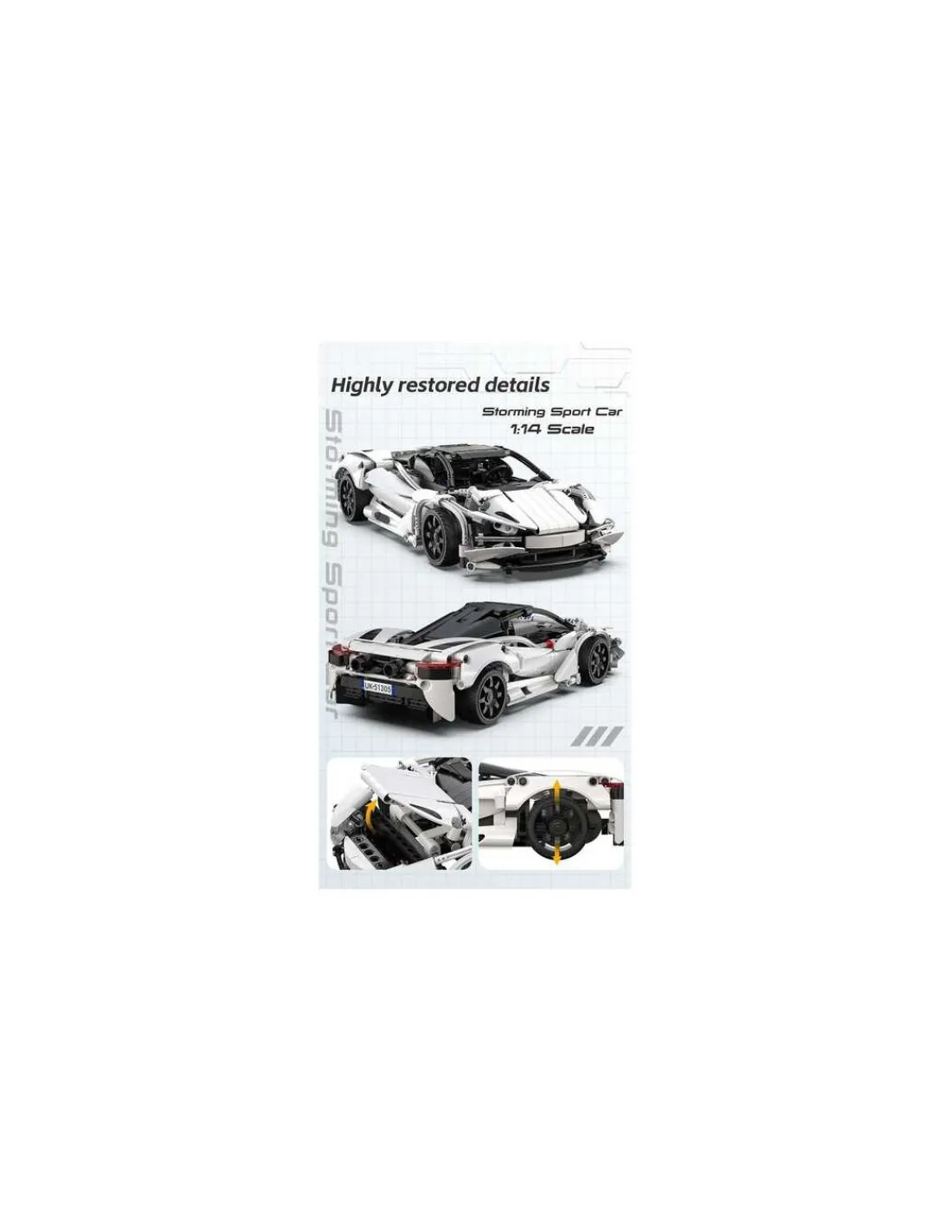La voiture de sport CaDA Storming offre une ambiance époustouflante et un design d’un réalisme irréprochable. Ce jouet impressionnant n’est pas seulement une voiture à assembler sur châssis, mais aussi un véhicule télécommandé. Il est doté d’un système de contrôle bimode, permettant de le piloter via une télécommande ou une application mobile, et prend en charge la programmation STEAM, favorisant ainsi le développement des capacités manuelles et la créativité des enfants.