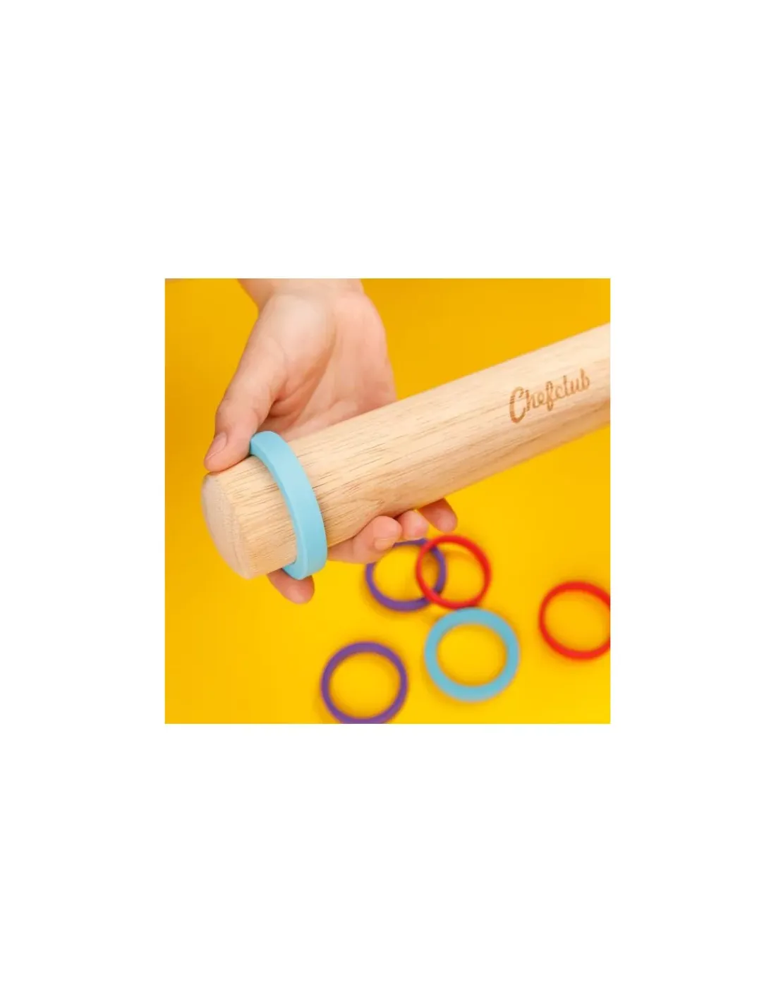 Le coffret contient 1 rouleau à patisserie en Hévéa et 6 anneaux en silicone.