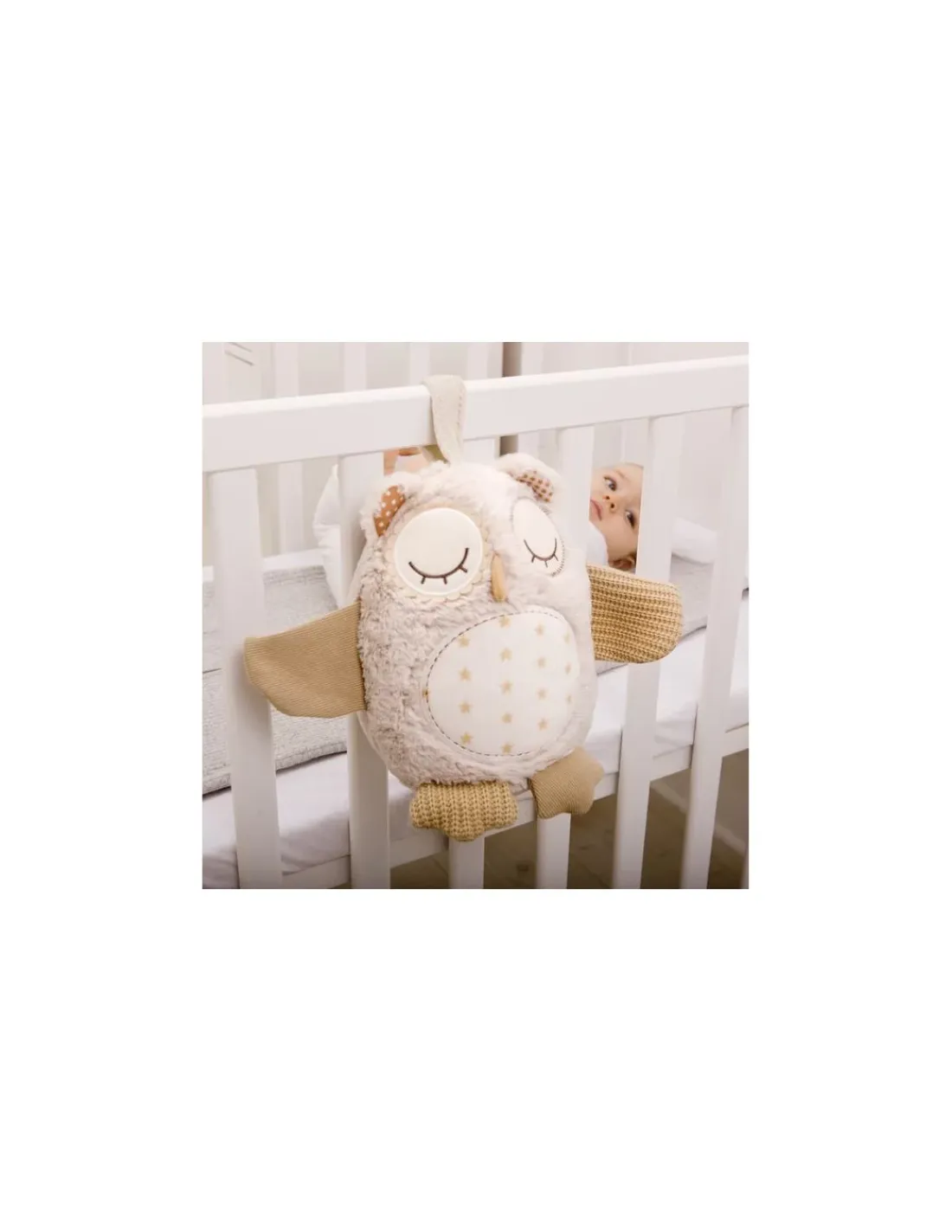 Cette adorable chouette cache un boitier musical multi-fonctions, il diffuse des sons apaisants à l’heure du coucher et se déclenche lorsque bébé se réveille la nuit pour reprendre le dernier son qui a été joué.