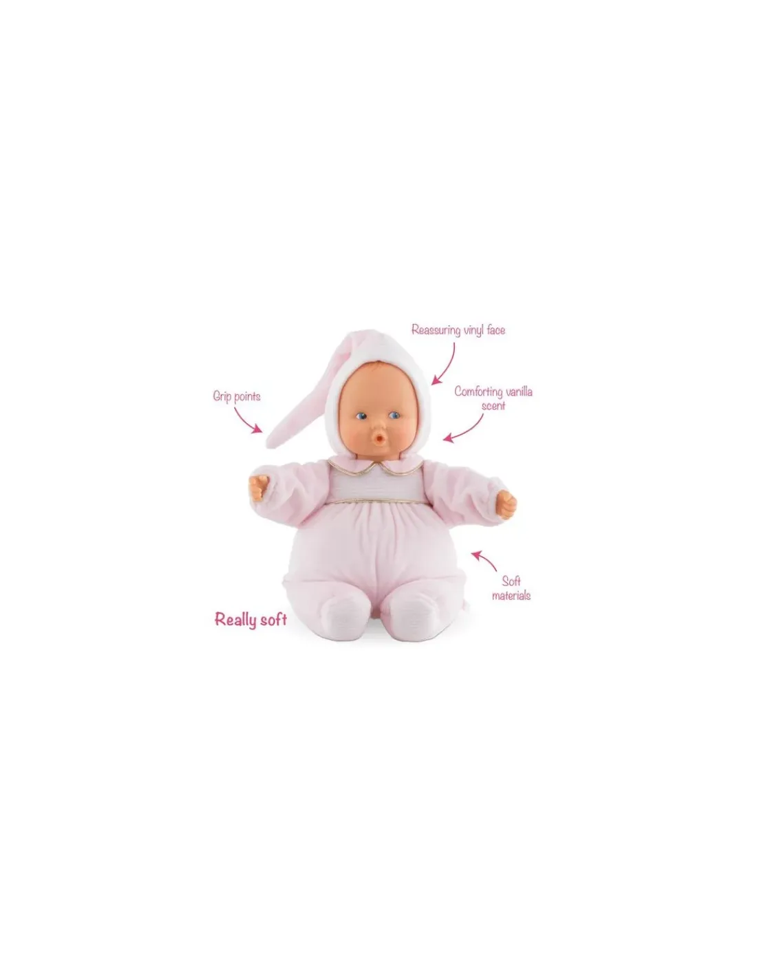 Corolle vous présente sa poupée Babipouce rose fleur de coton, un poupon tout doux et moelleux pour accompagner bébé dans son berceau.