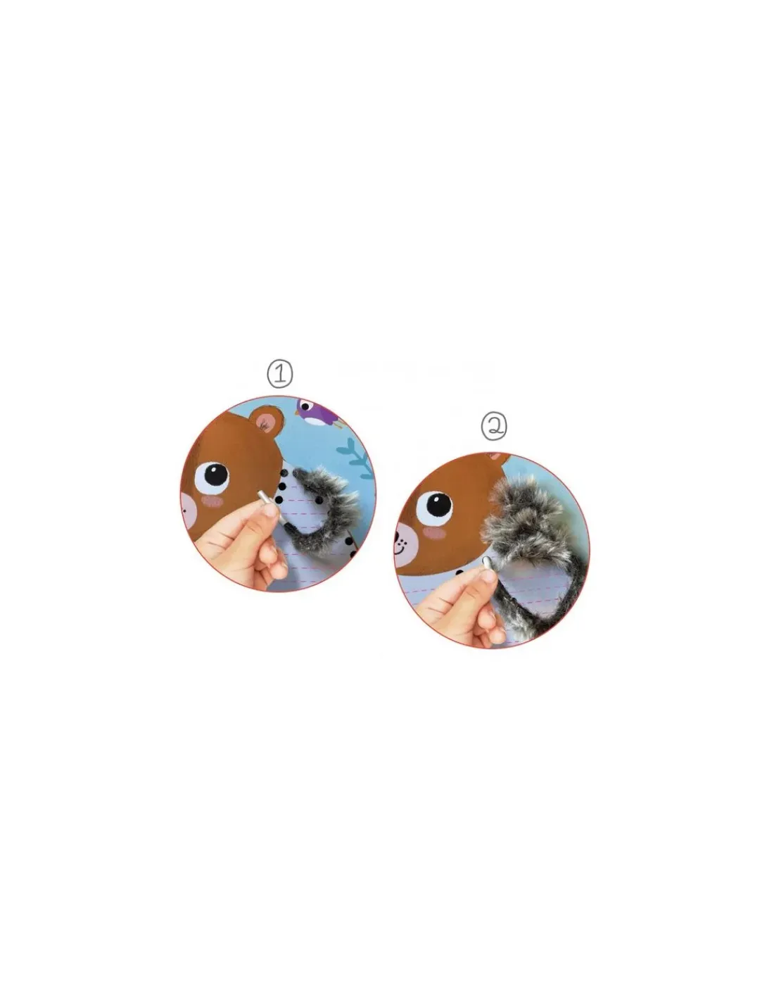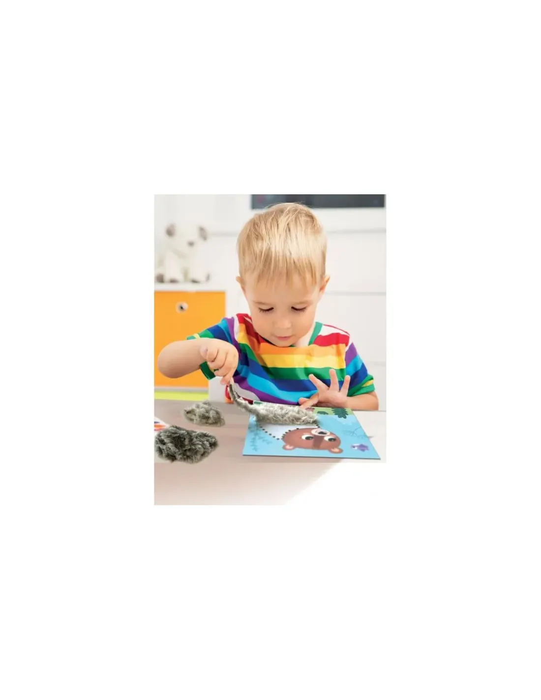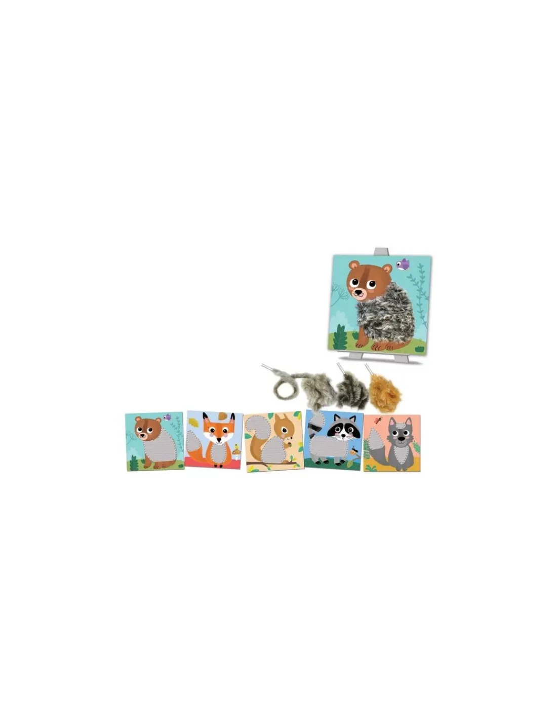 Votre enfant s’amusera à lacer les cartes avec la laine pour créer des animaux à la douce fourrure : un ours, un renard, un loup, un raton laveur et un écureuil. Une fois les tableaux terminés, il pourra les exposer sur le joli chevalet fourni.