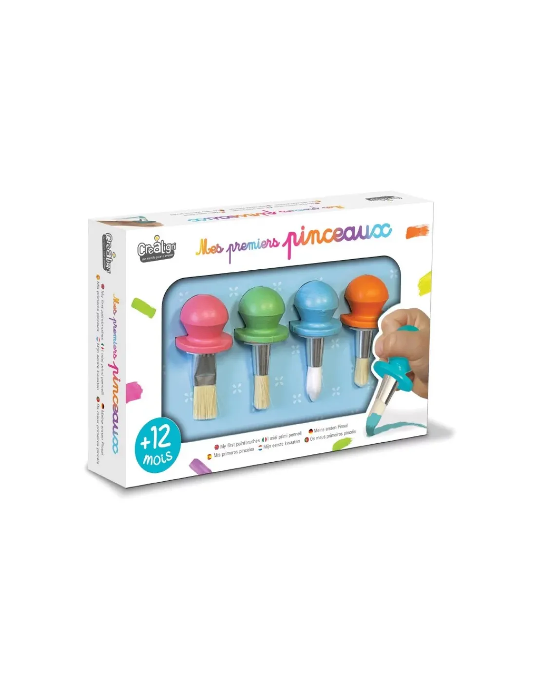 Découvrez le coffret Mes premiers pinceaux de Créalign’, 4 pinceaux avec une poignée ergonomique pour les enfants à partir de 1 an.