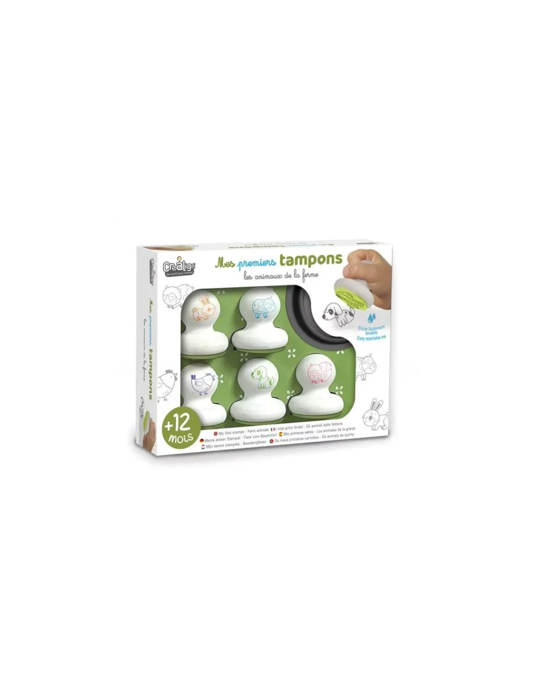 Découvrez le coffret Mes premiers tampons Animaux de la ferme de Créalign’, un coffret créatif de tampons en mousse pour les enfants à partir de 1 an.