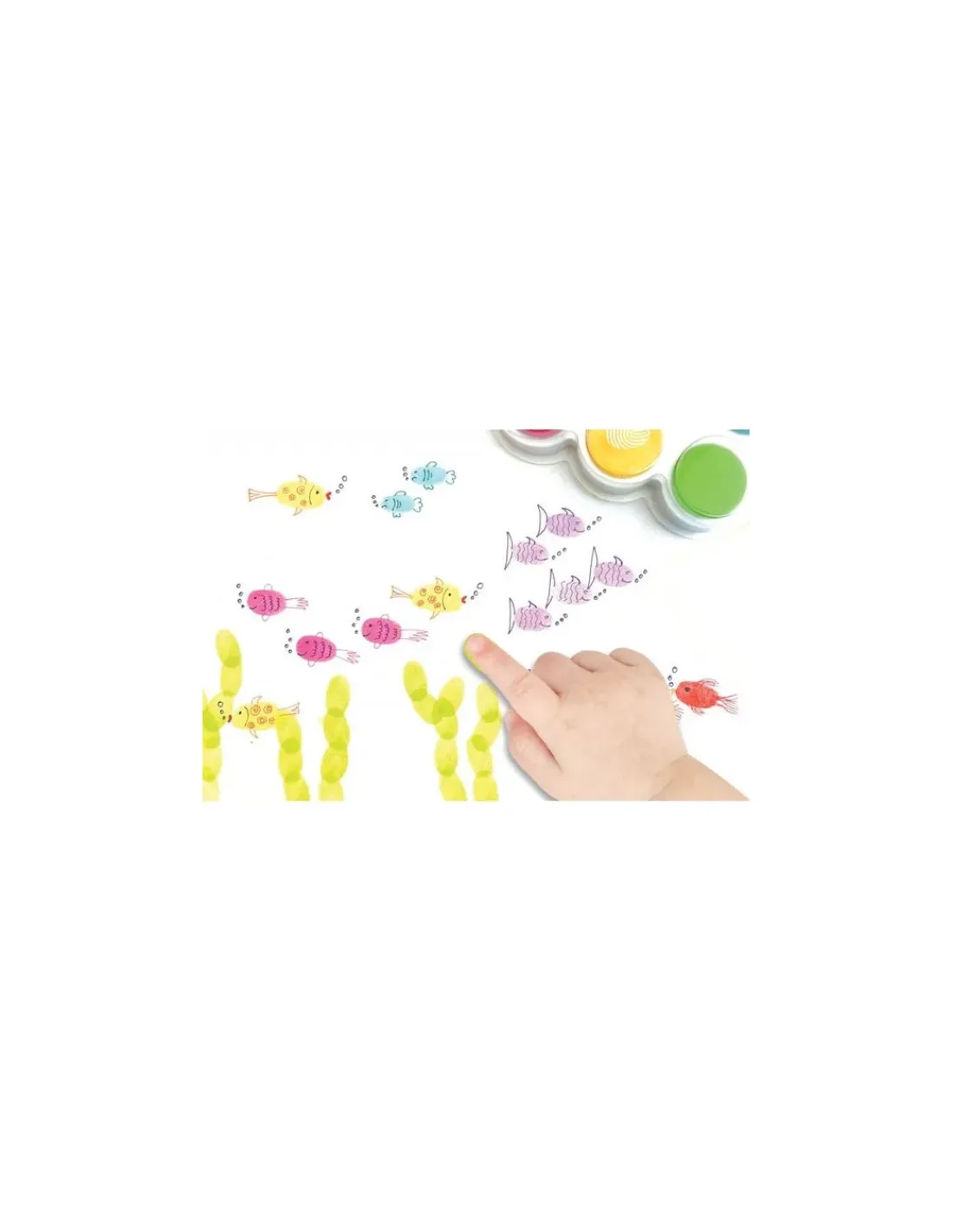 Un cadeau idéal pour les loisirs créatifs des plus petits avec 6 couleurs lavables à l’eau savonneuse. Appliquez votre doigt sur l’encreur et posez sur une feuille et réalisez de jolis dessins avec vos doigts.