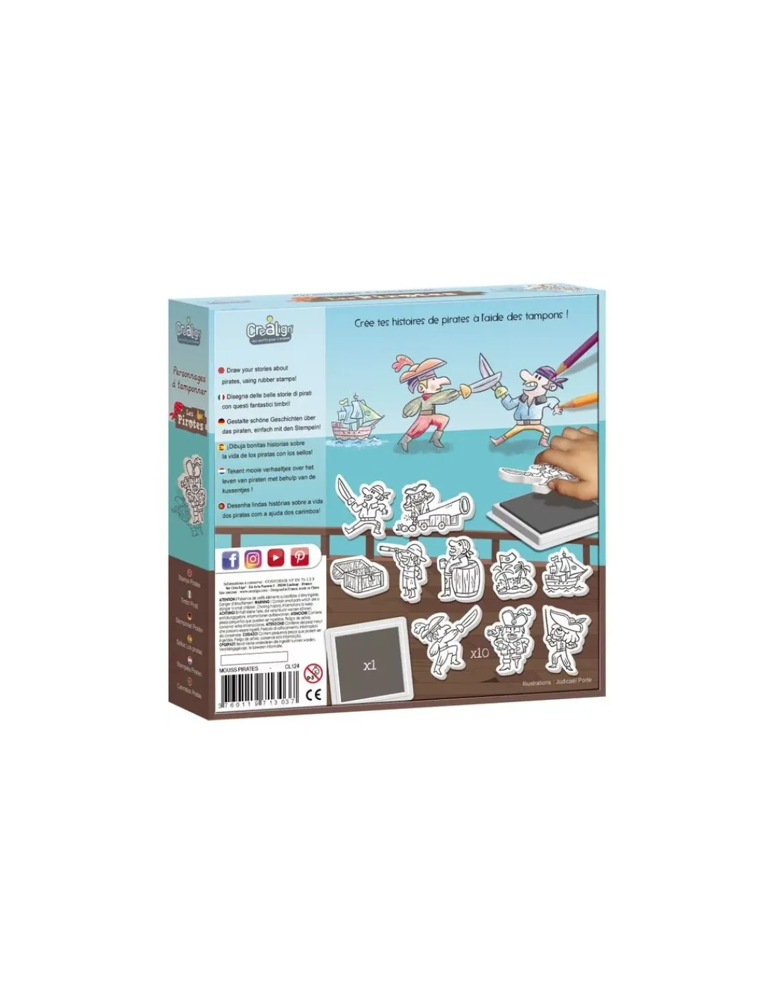 Découvrez le coffret Personnages à tamponner Les Pirates de Créalign’, un coffret créatif de 10 tampons en mousse sur le thème des pirates pour les enfants à partir de 4 ans.