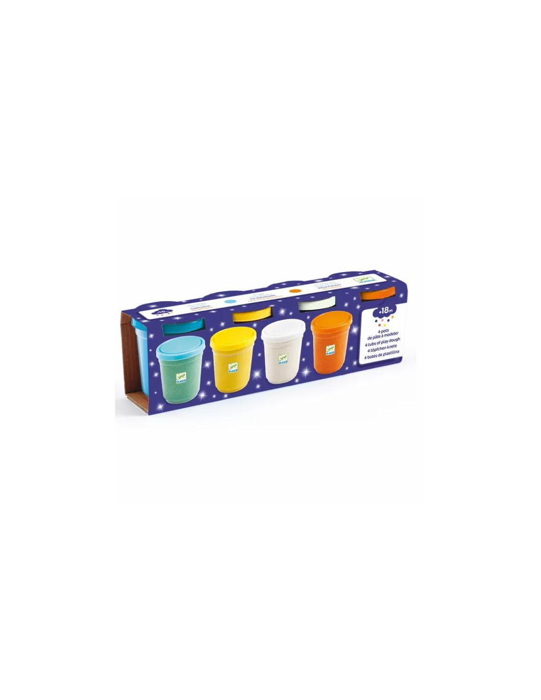 Découvrez les 4 pots de pâte à modeler pailletées pour les enfants dès 18 mois de Djeco, une pâte ultra souple qui ne tâche pas pour que la création de votre enfant s’exprime avec ses doigts. 4 couleurs pailletées pour continuer à créer.