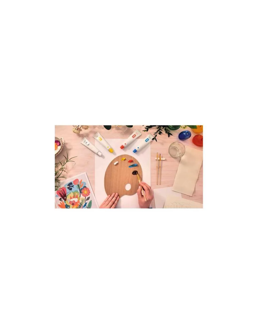 Ce coffret comprend 1 toile imprimée avec les contours de l’illustration, à peindre (format 290 x 220 mm), 4 tubes de peinture acrylique, 1 palette en bois, 3 pinceaux, 1 support pour pinceaux, 1 cadre en bois, 1 modèle à suivre, un dépliant et une carte avec QR code menant à une vidéo tuto pour découvrir l’activité.