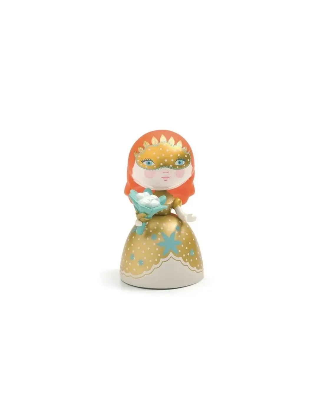 Découvrez la princesse Barbara, une figurine Arty toys de Djeco, une princesse articulée et illustrée tenant à la main un bouquet de fleurs et portant une robe dorée.