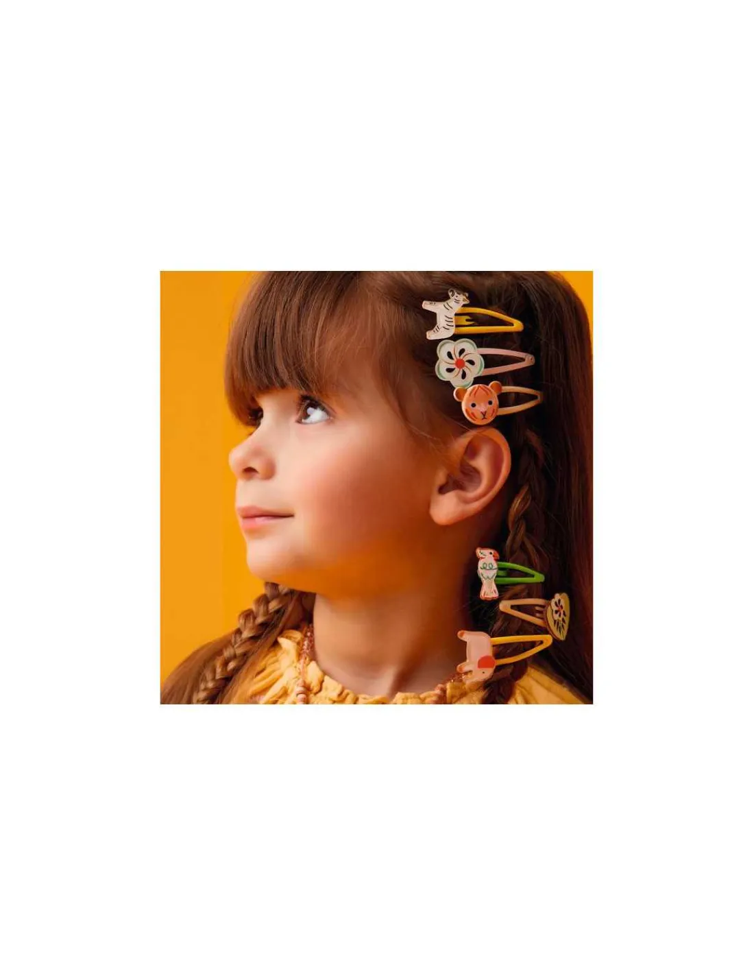 Découvrez les barrettes Colomba de la collection Plume de Djeco, un ensemble de 3 barrettes issu de l’univers Jungle, des accessoires de coiffure élégants et raffinés, parfaits pour sublimer les cheveux des enfants.
