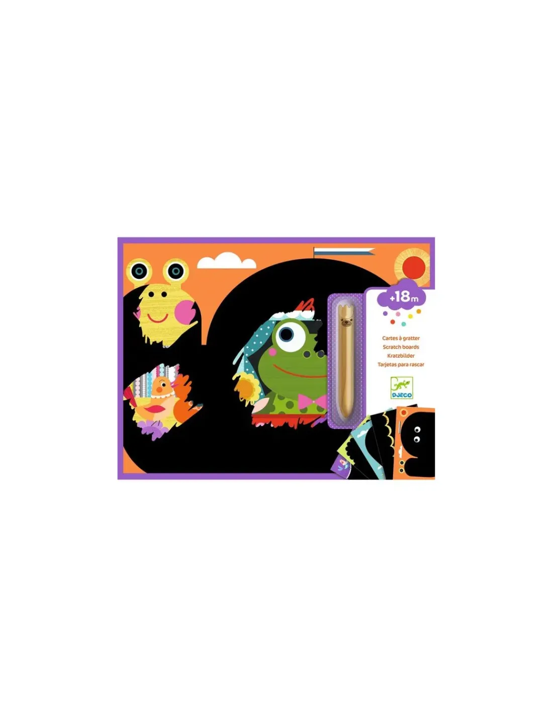 Découvrez les cartes à gratter C’est rigolo à découvrir de Djeco, une pochette de loisirs créatifs composée de 5 grands tableaux à gratter, destinés aux enfants dès 18 mois. Ces derniers vont prendre plaisir à gratter pour dévoiler les couleurs de plusieurs animaux : une baleine, un escargot, un renard…