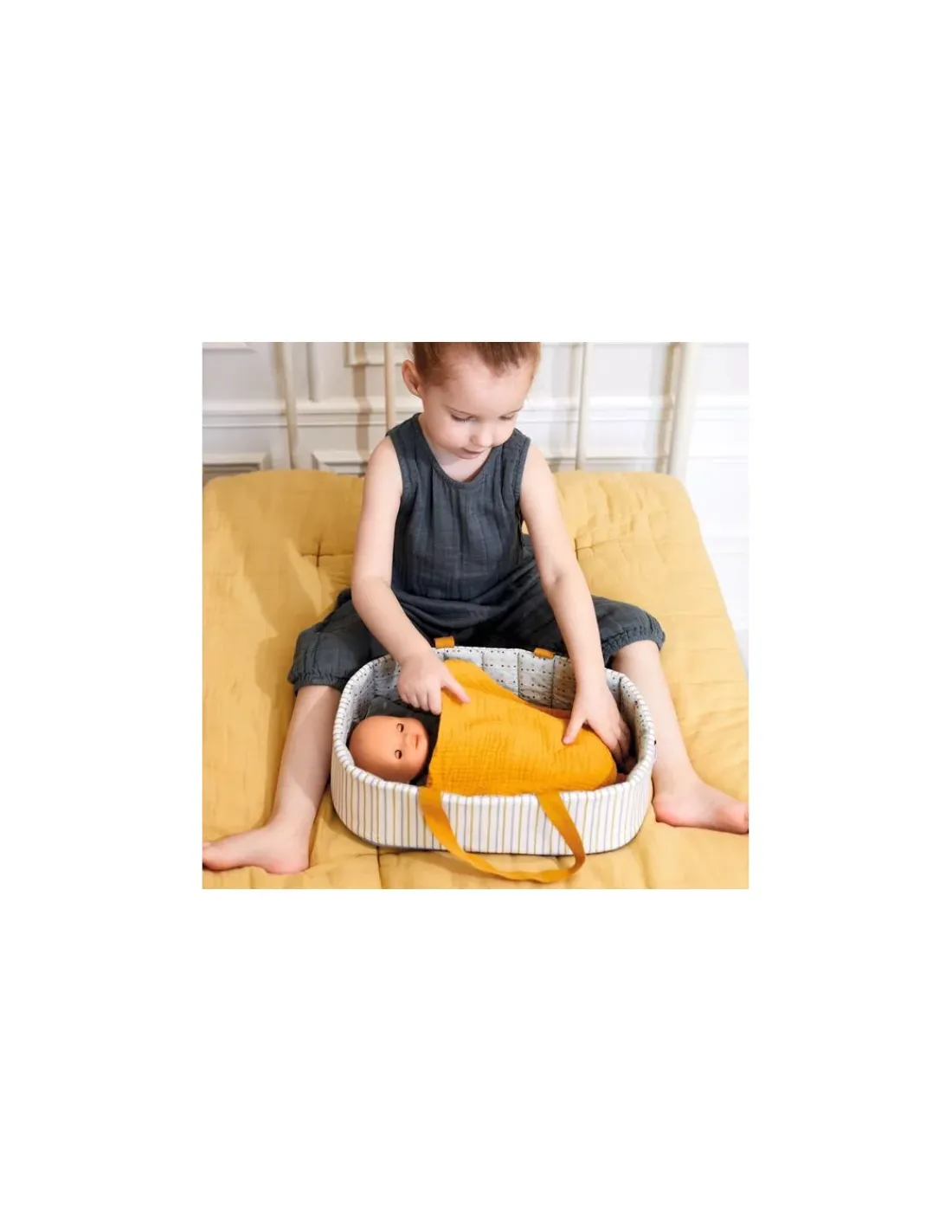 Un couffin léger et pratique avec ses anses souples pour emmener sa poupée partout avec soi. Un véritable nid douillet avec sa couverture douce et son oreiller pour que bébé dorme bien installé au chaud. Un cadeau pour les enfants qui aiment jouer à la poupée et adapté aux poupons de 30 à 36 cm.