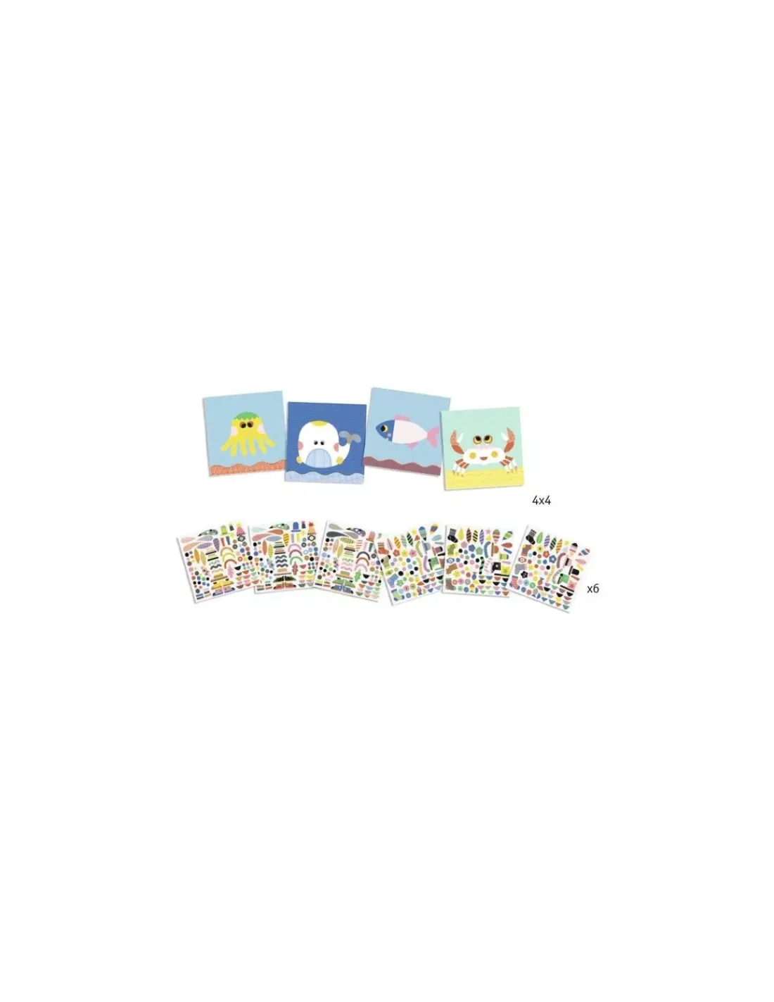 Découvrez la pochette créative créer des animaux marins avec des stickers de Djeco, une activité manuelle pour développer l’imagination et la motricité de votre enfant de 3 à 6 ans. Placez de stickers pour créer des animaux marins trop rigolos avec des crabes, des poissons, des pieuvres et des baleines.