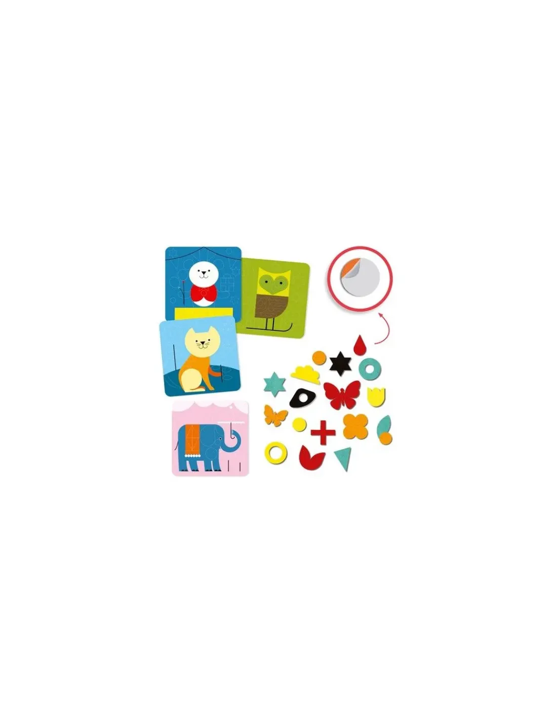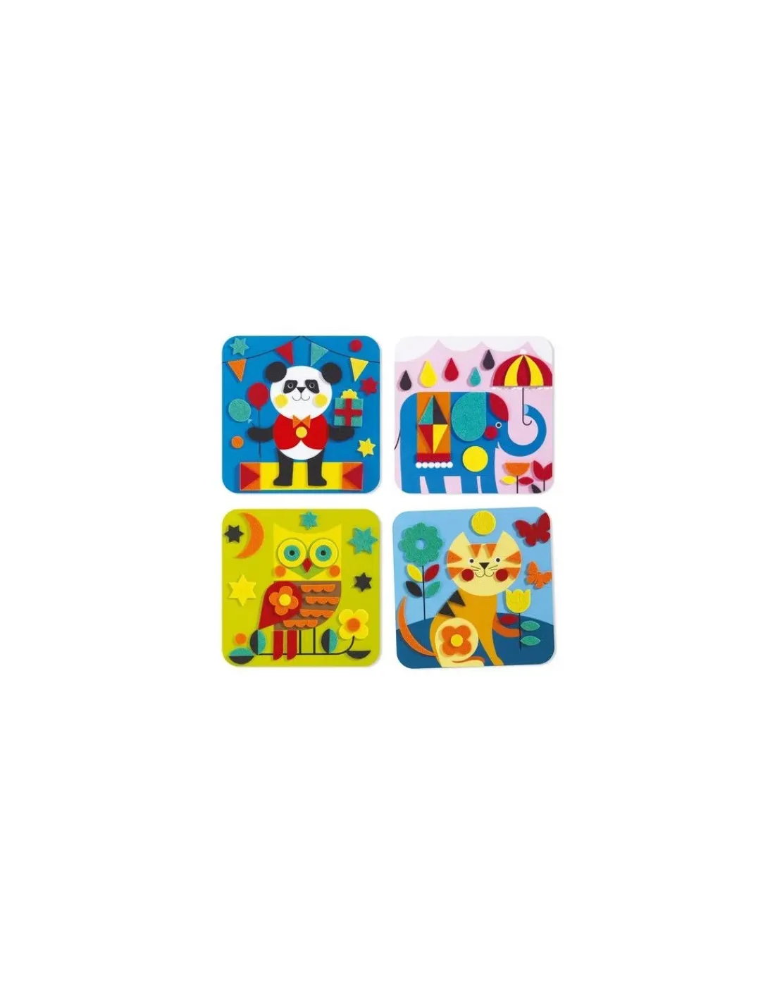 Découvrez les tableaux de feutrine « douces créatures » de Djeco, une activité de collage avec de la feutrine colorés autocollantes pour les enfants de 3 à 6 ans.