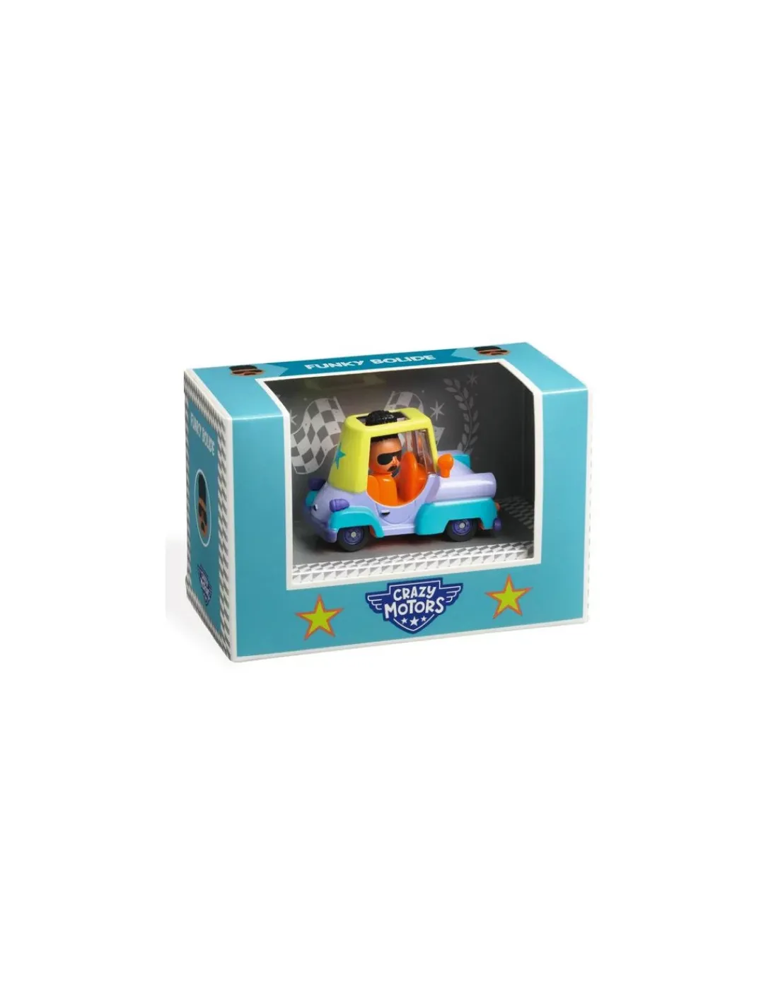 Découvrez Funky Bolide de la collection Crazy Motors de Djeco, une voiture en métal avec son pilote. Un jouet pour les enfants de 3 à 9 ans.