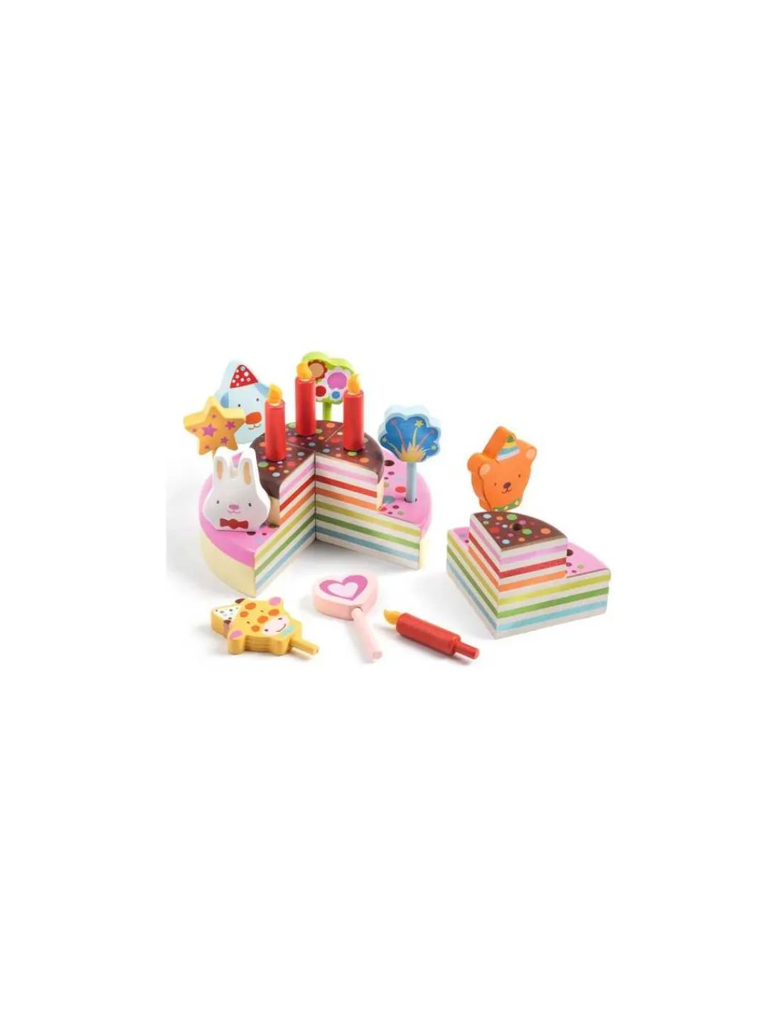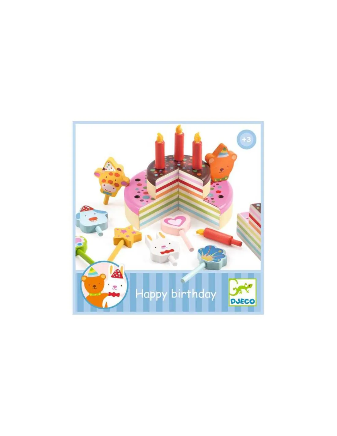 Découvrez le coffret Happy Birthday de Djeco, une dinette en bois avec un joli gâteau d’anniversaire haut en couleur permettant aux enfants, dès 3 ans, d’imiter les gestes des grands en préparant un dessert délicieux et amusant.