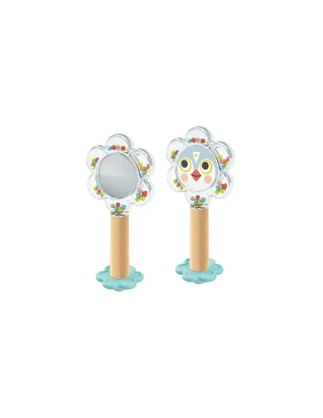 Découvrez le hochet Babyflower de la collection « Baby White » de Djeco, un hochet miroir avec des petites billes en plastique dans les pétales de la fleur, qui vont produire des sons pour éveiller bébé. Un hochet facile à attraper grâce à sa fine tige en bois naturel et à secouer dès 3 mois.