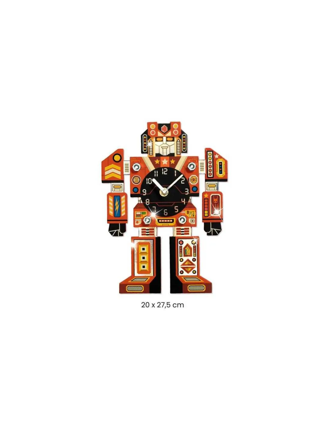 Une belle horloge en forme de robot, que votre enfant sera fier d’accrocher dans sa chambre pour la décorer.