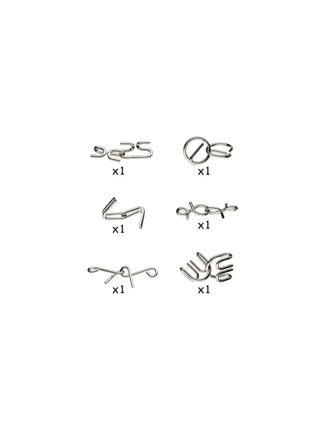 La boite de jeu contient 6 casse-tête en métal et les solutions de montage en image et en 10 langues.