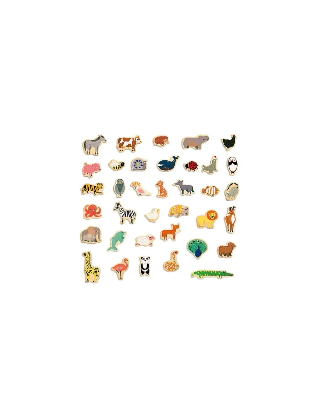 Un coffret de 36 pièces magnétiques en bois à placer sur un tableau magnétique ou sur un frigo, l’occasion d’échanger avec votre enfant sur les noms des animaux qu’il va découvrir. Des animaux marins, des animaux sauvages ou des animaux familiers aux douleurs douces pour amuser les enfants et pour inventer des histoires.